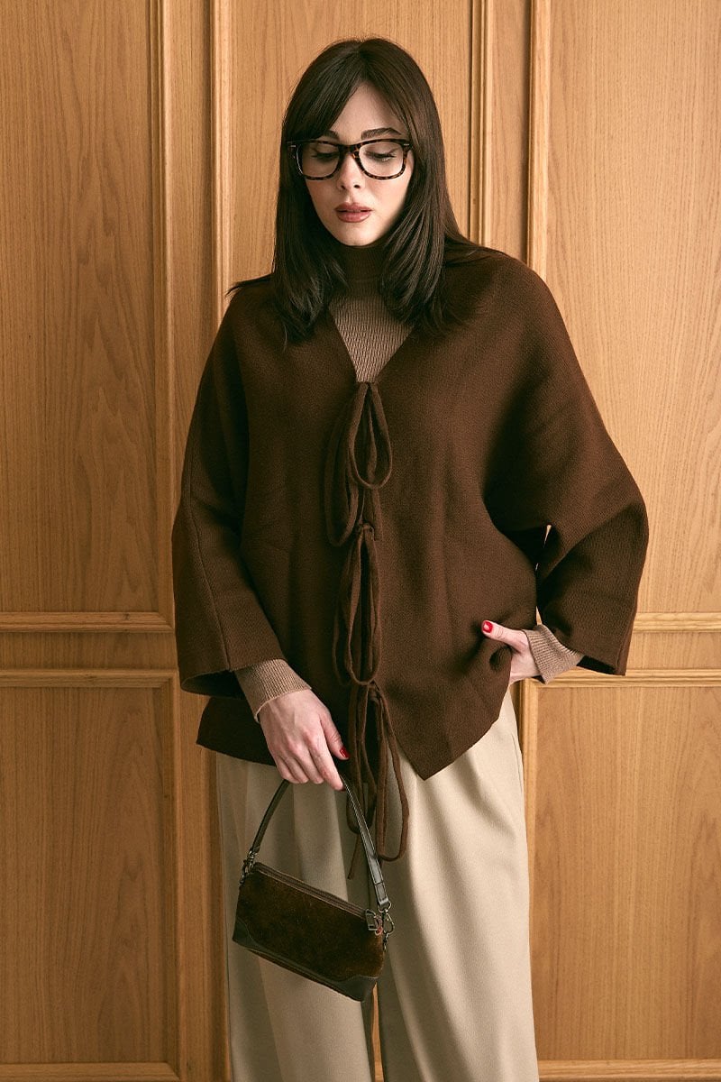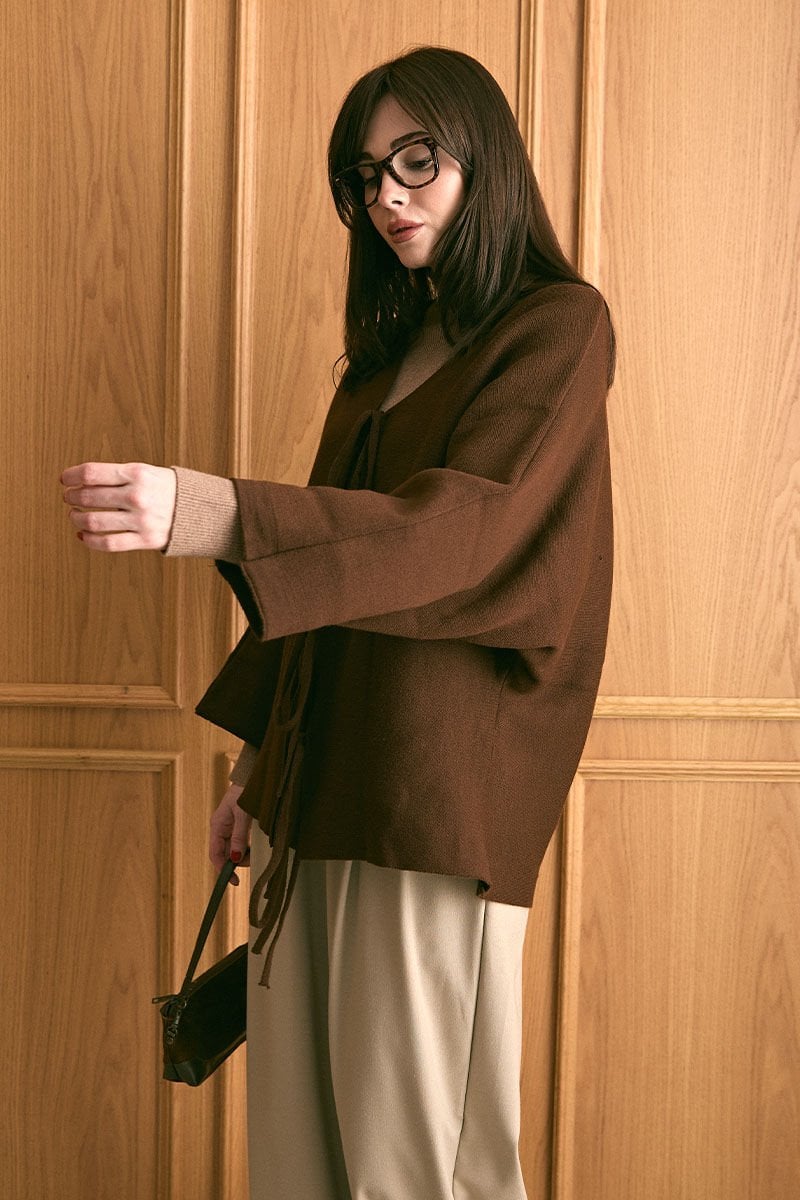 Acı Kahve 3 Fiyonklu Triko Ceket