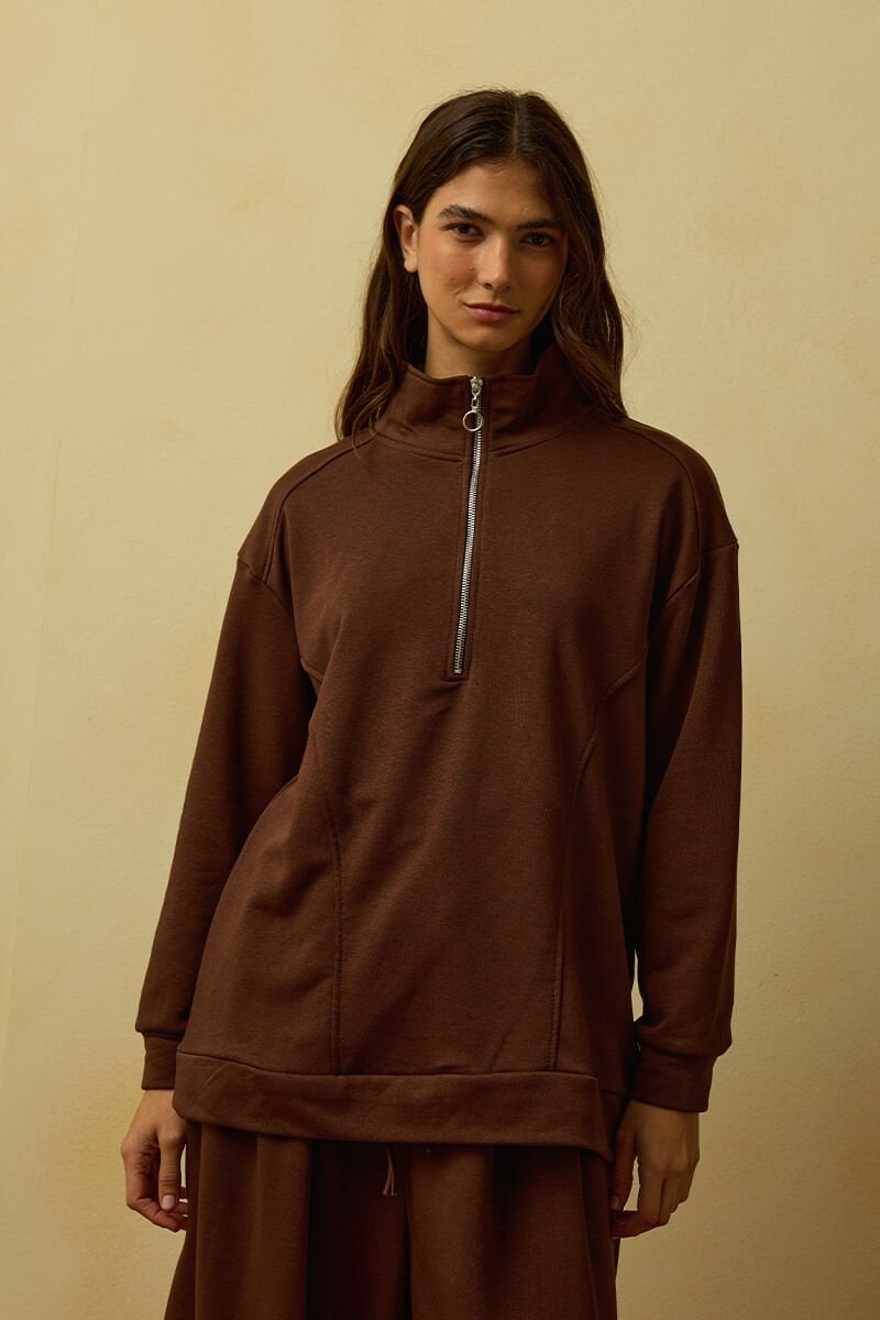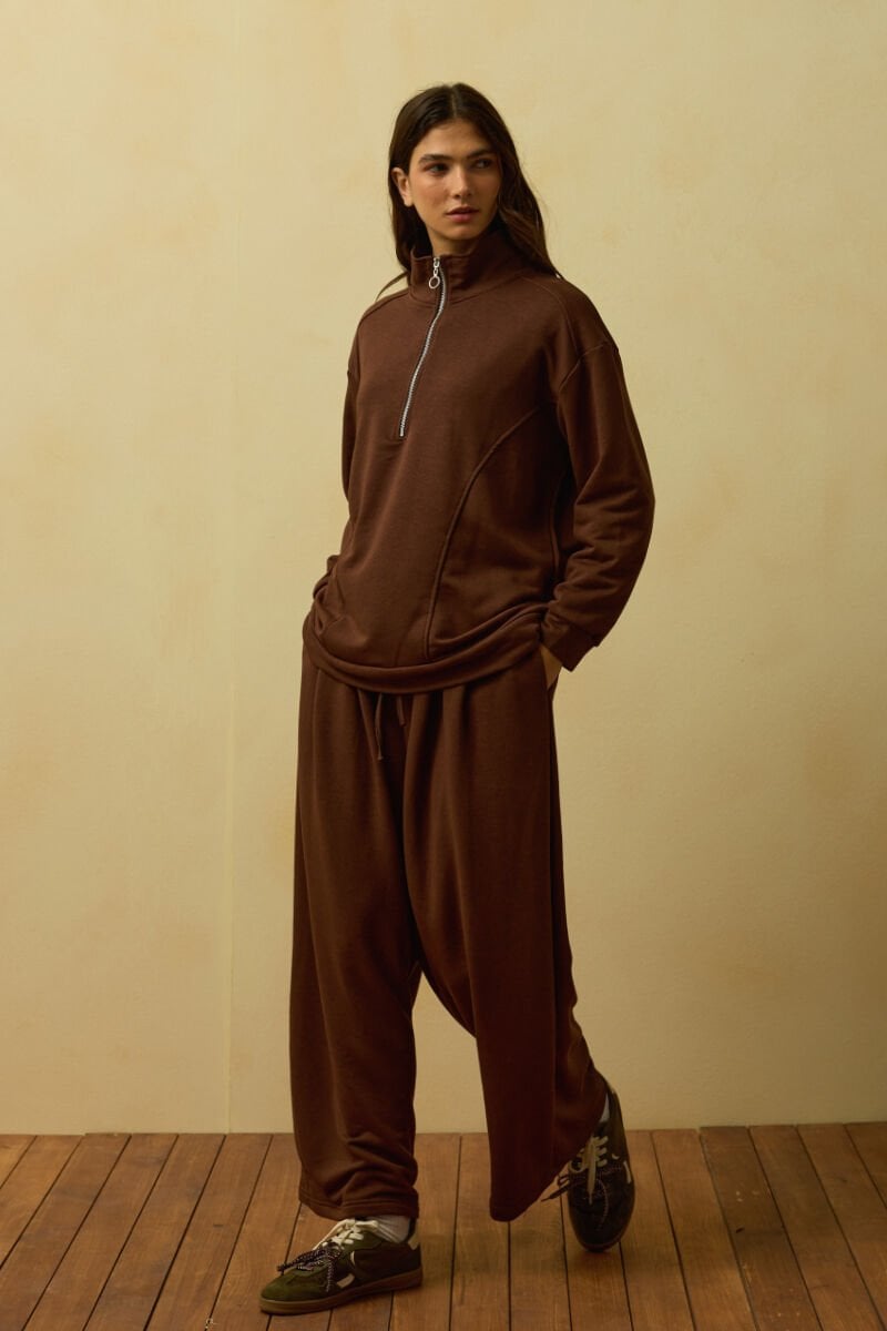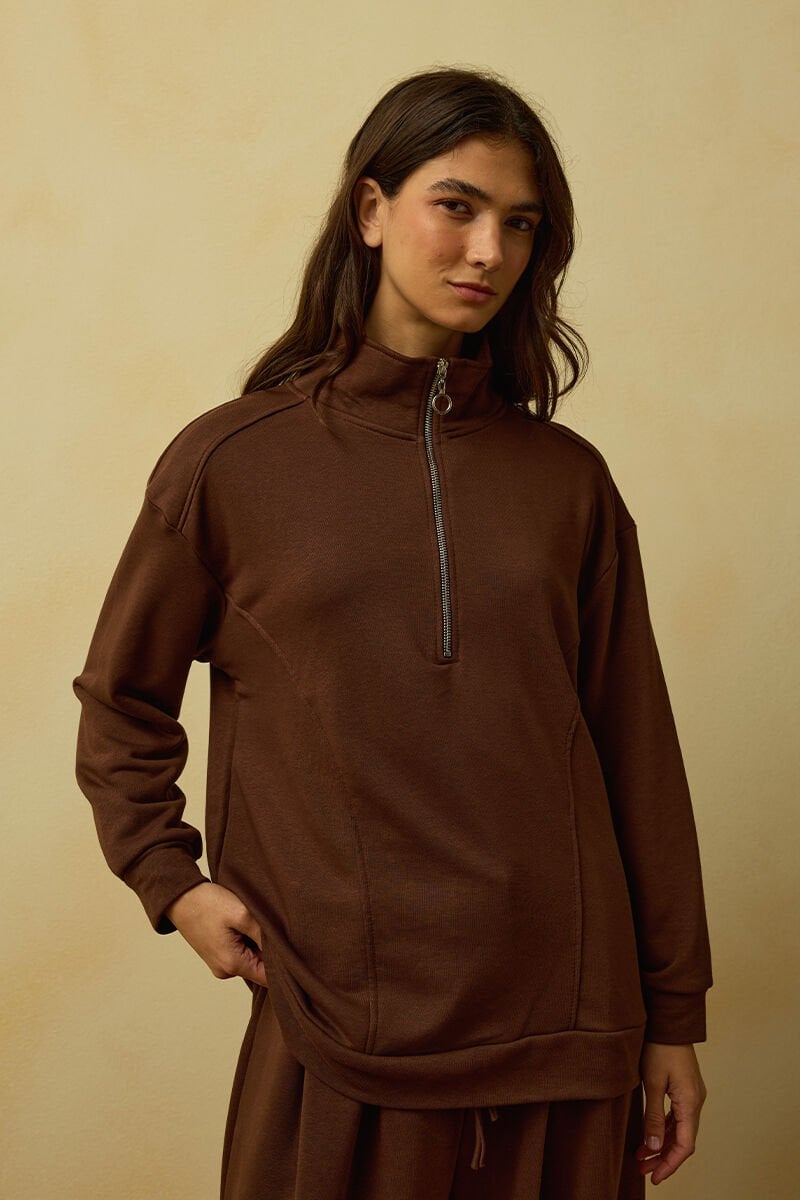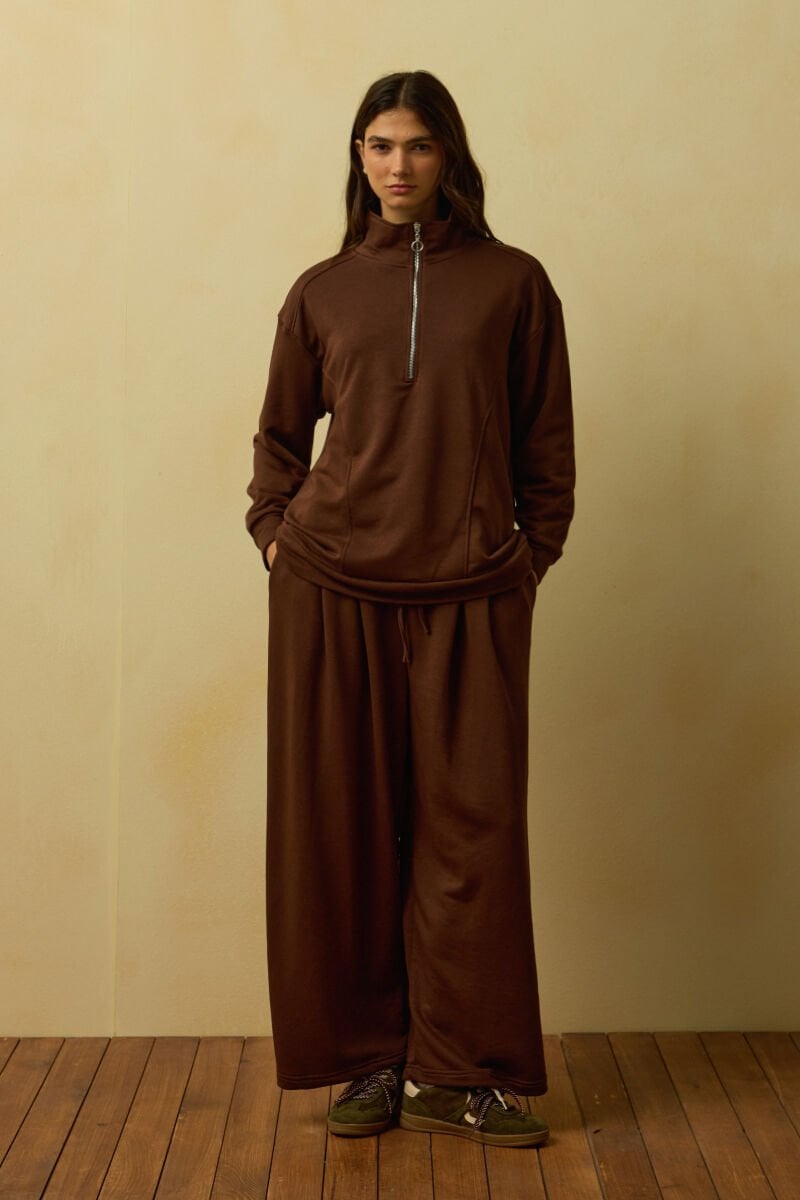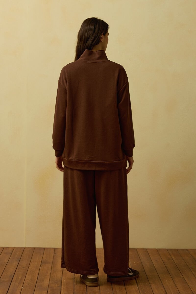 Acı Kahve 3 İplik Yarım Fermuarlı Eşofman Takım