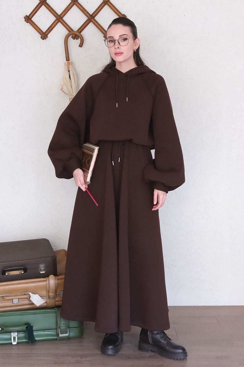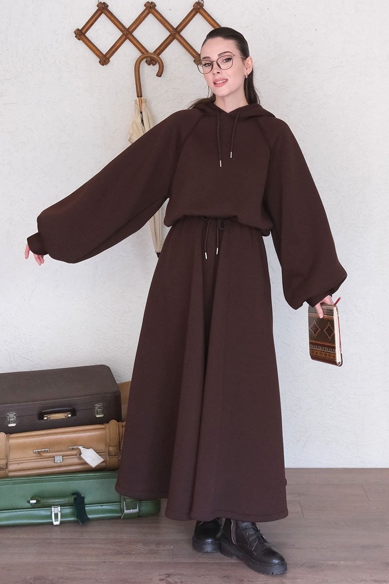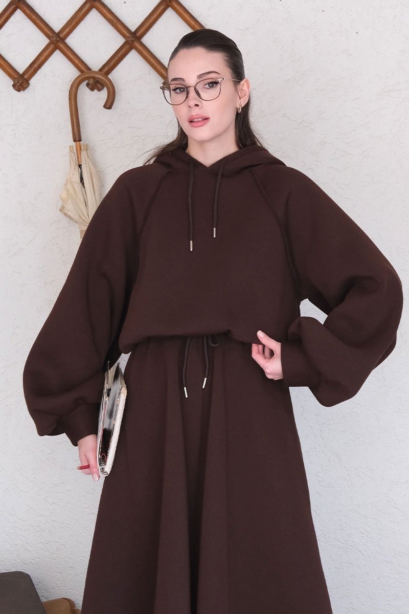 Acı Kahve 3 İplik Sweat & Etek Takım
