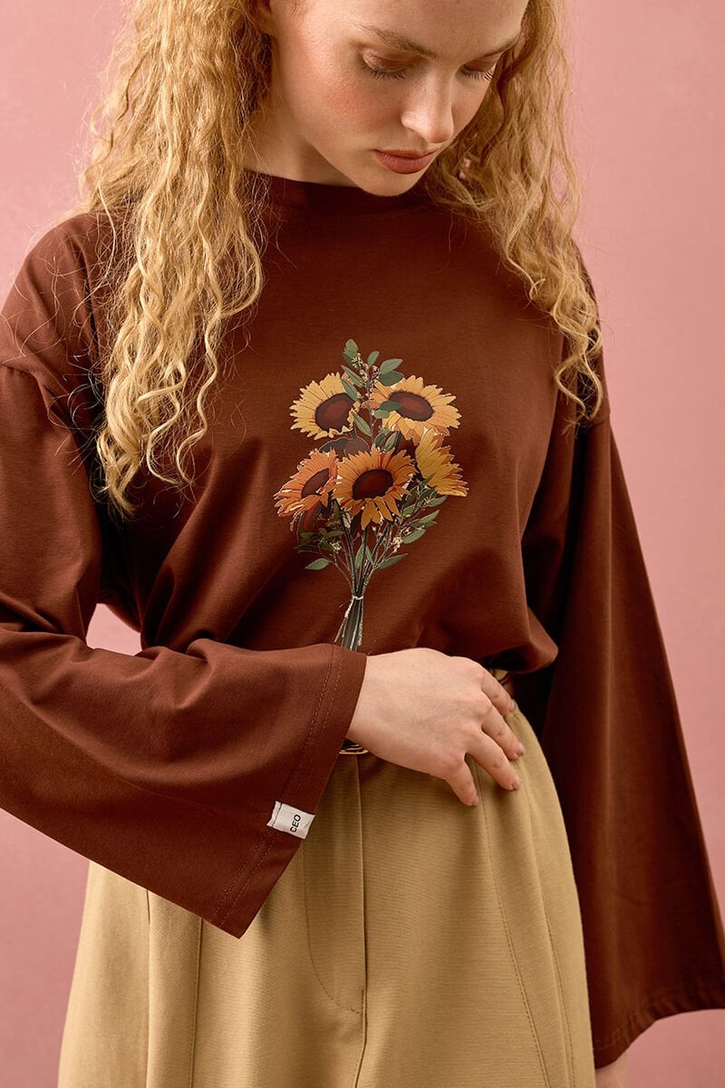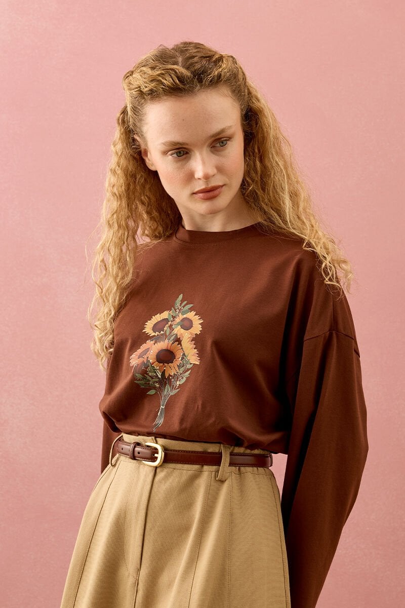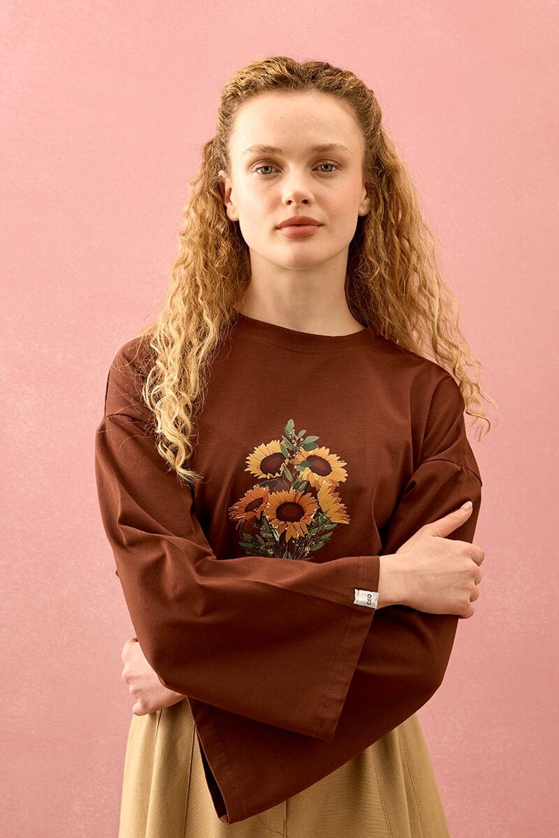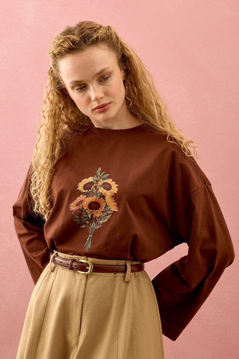 Acı Kahve Ay Çiçeği Baskılı Basic Body