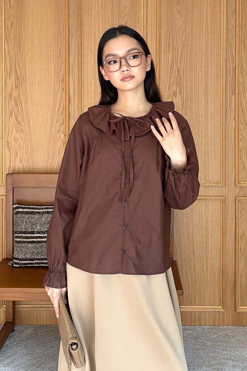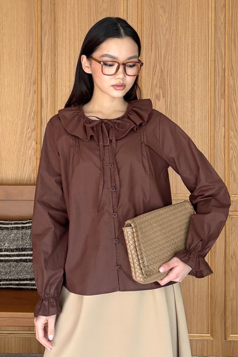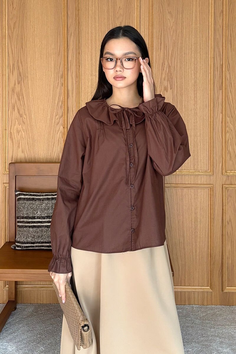 Acı Kahve Bebe Yaka Fiyonklu Gömlek