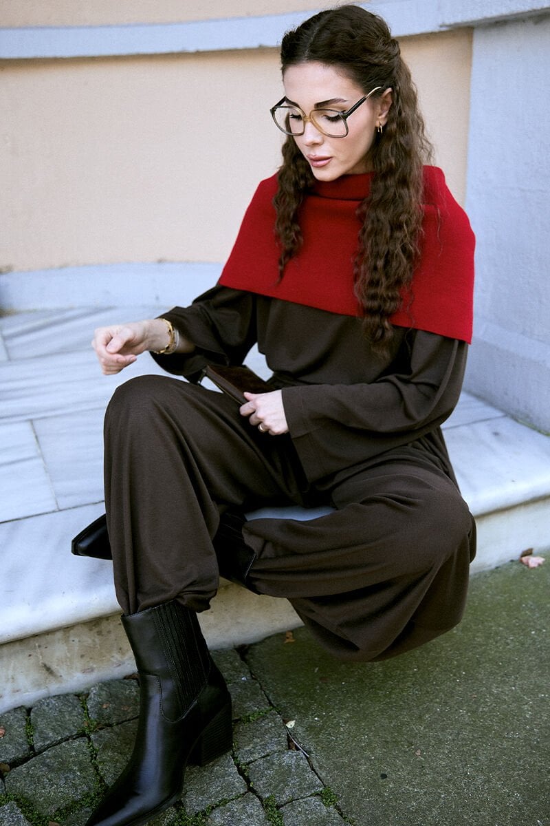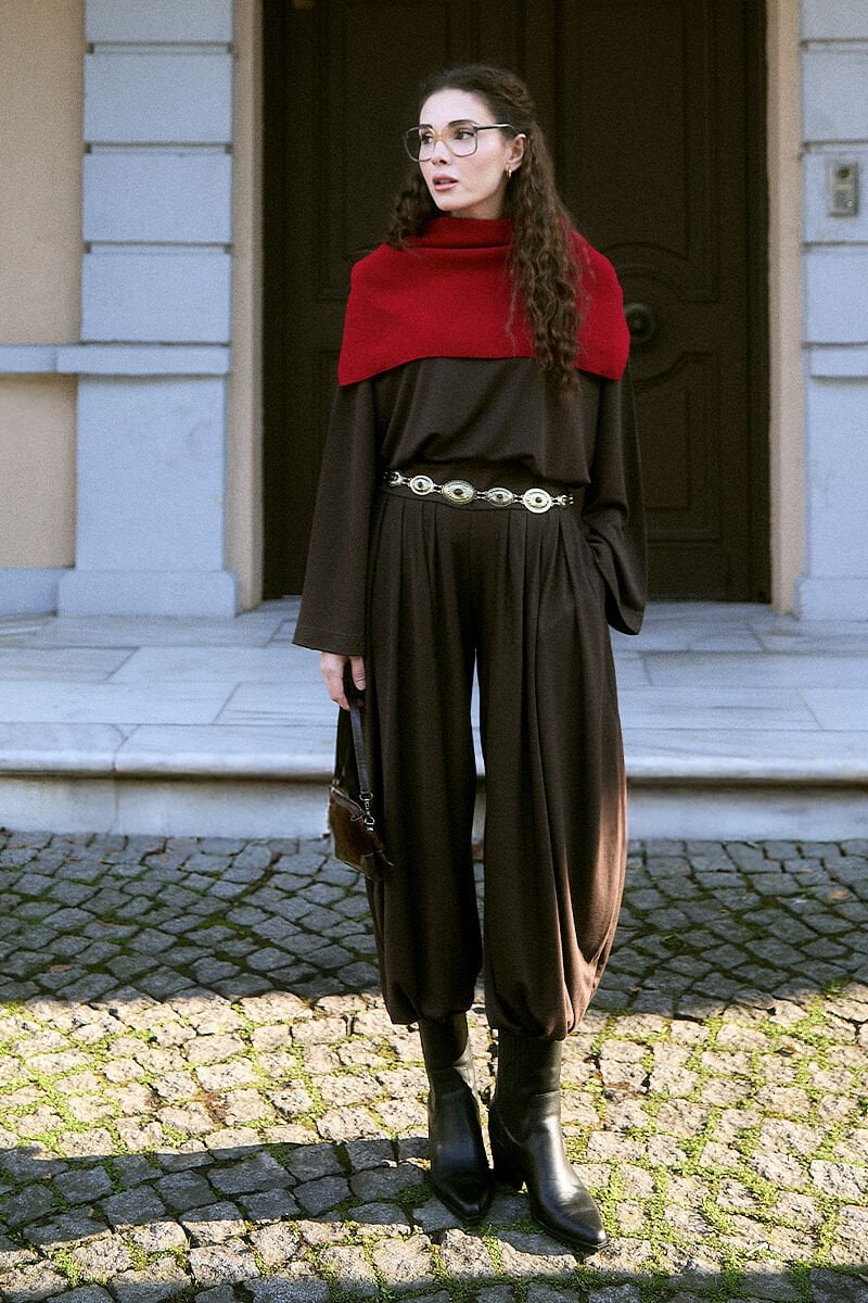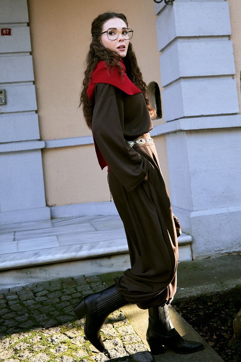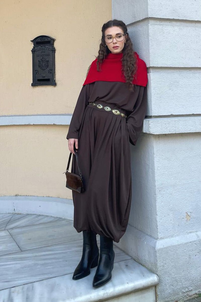 Acı Kahve Oysho Kumaş Pileli Şalvar Takım