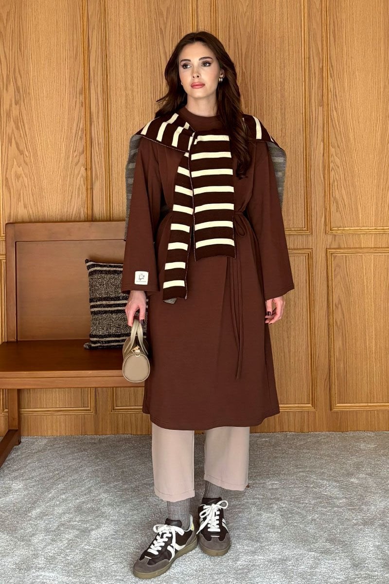 Acı Kahve Çizgili Şal Atkı