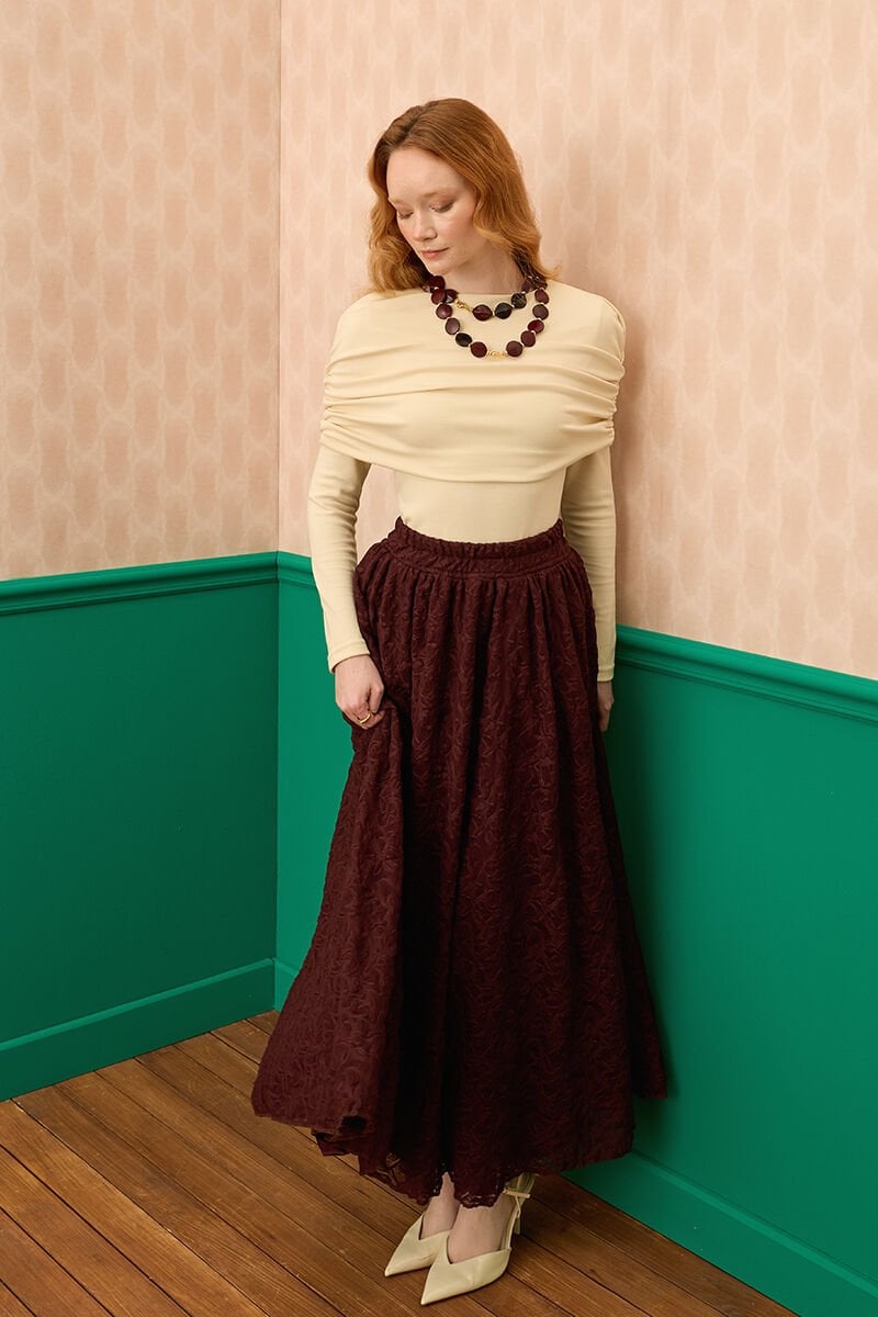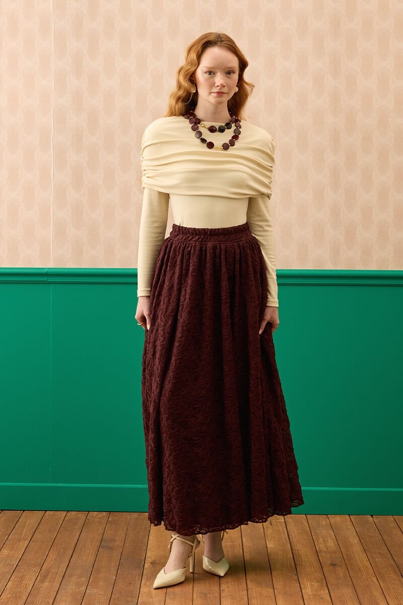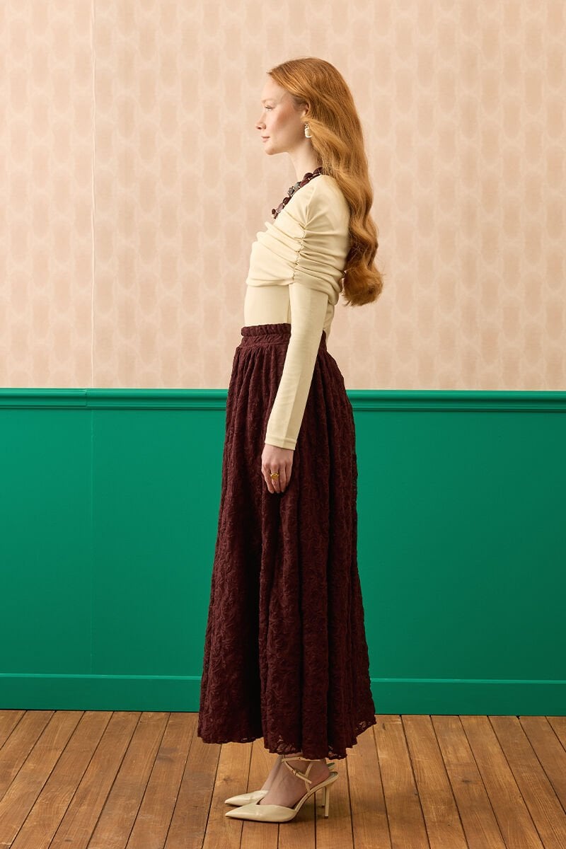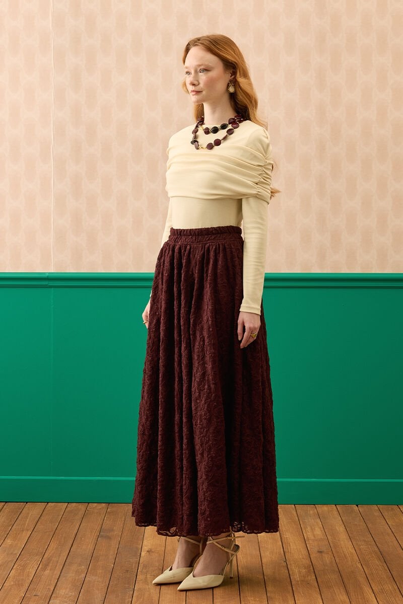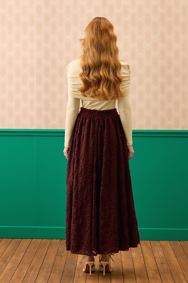 Dantelli balon etek, zarif ve şık tasarımıyla dikkat çeker.