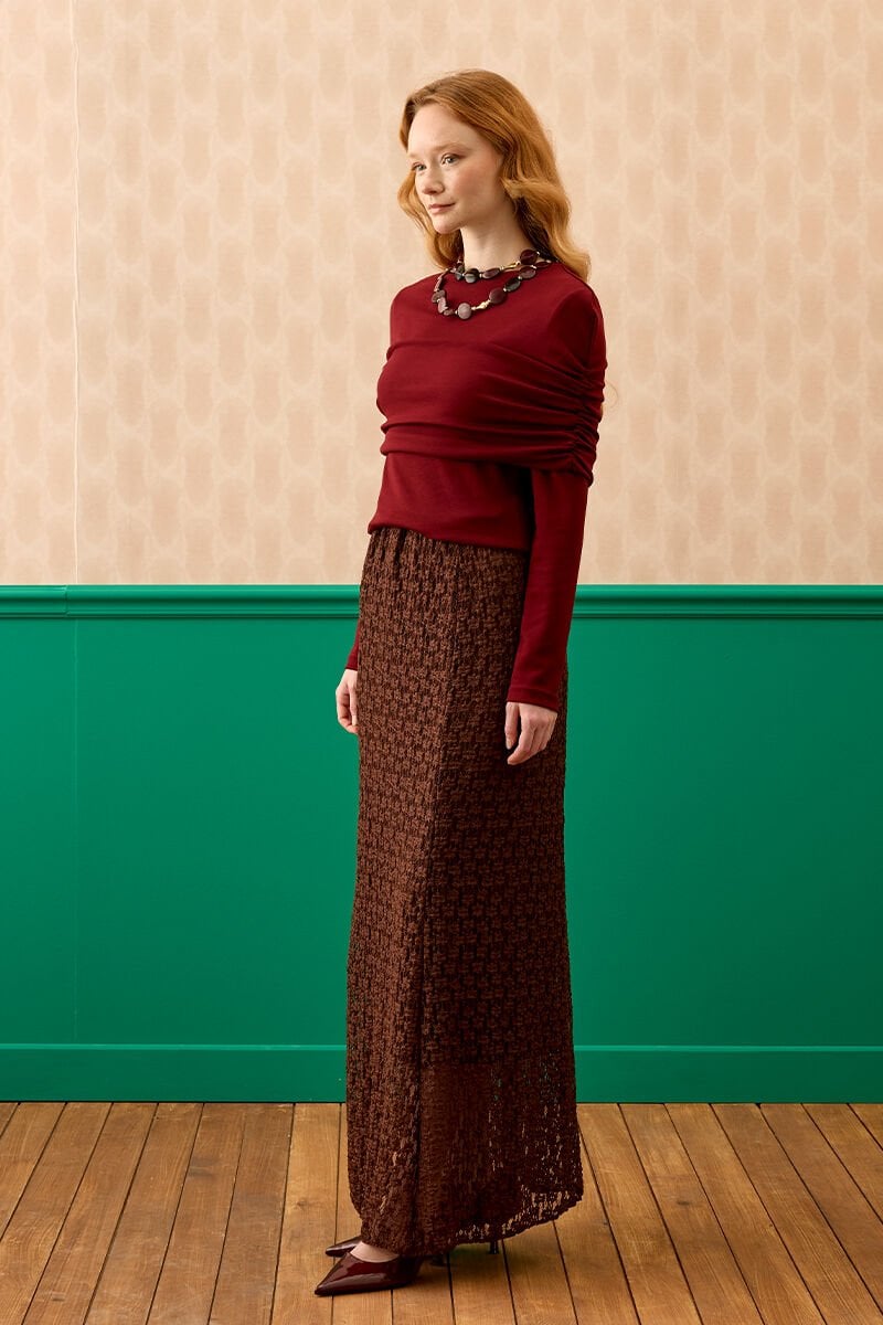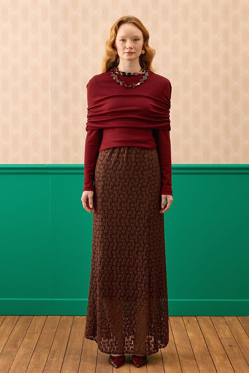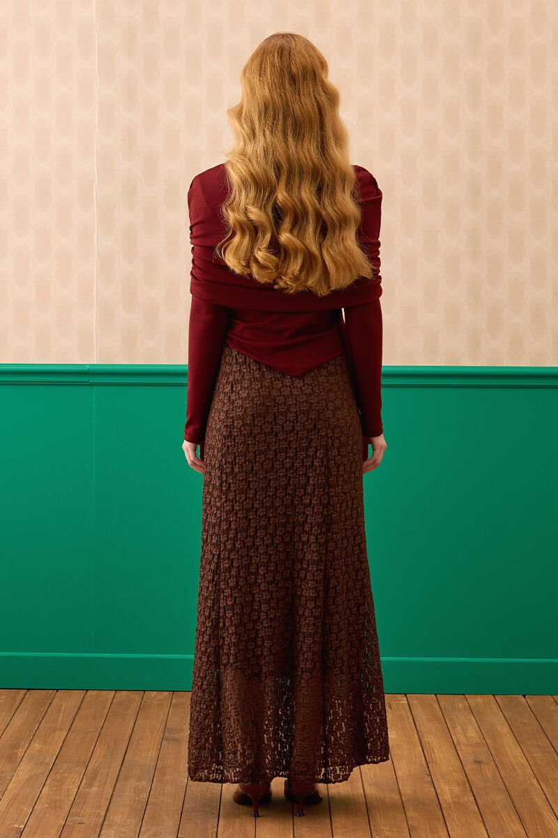 Acı Kahve Dantelli Kloş Etek