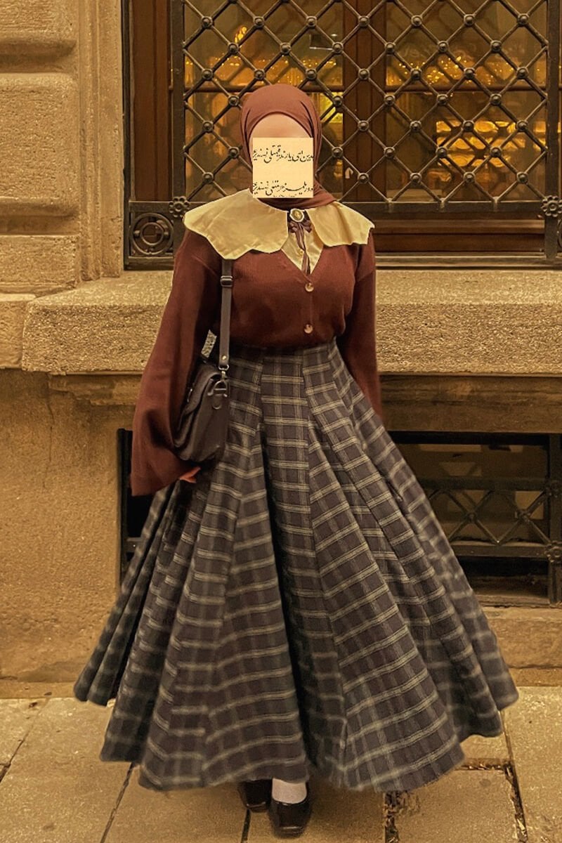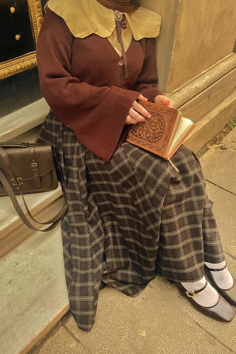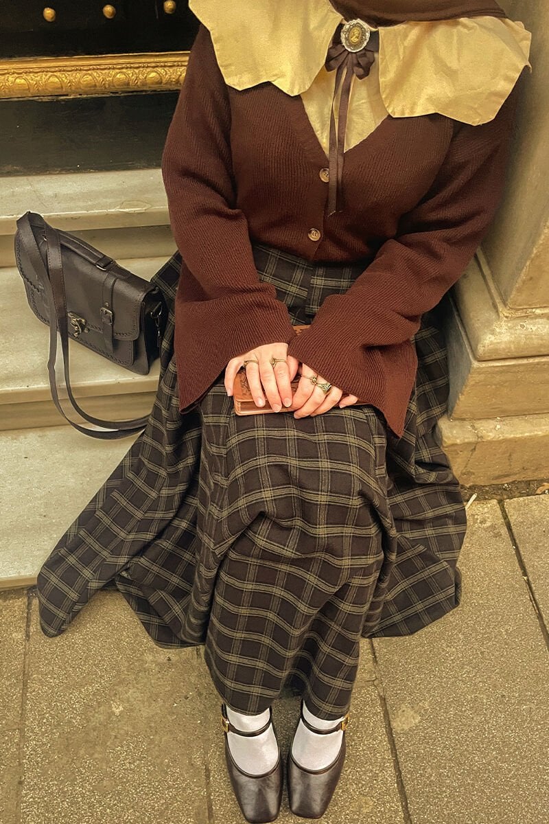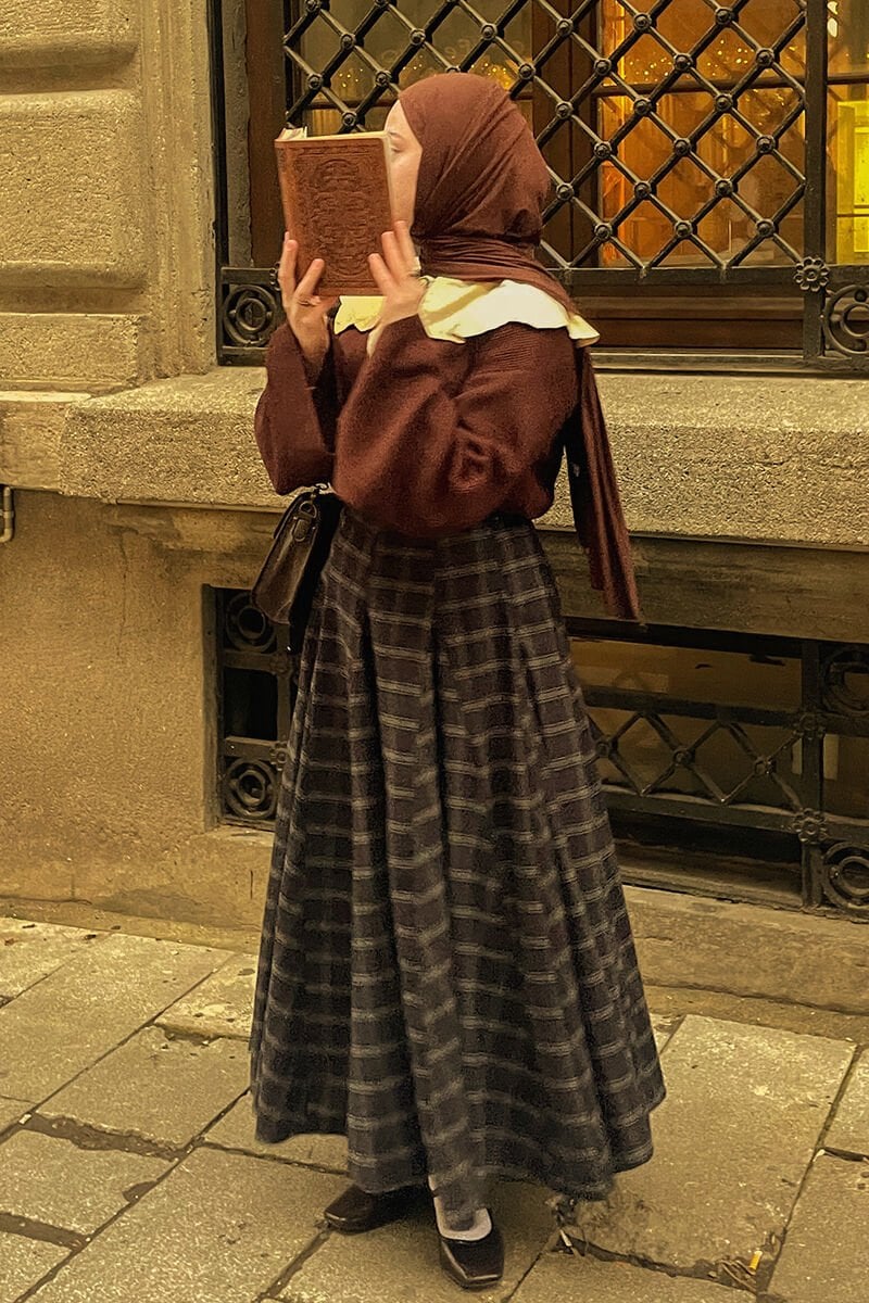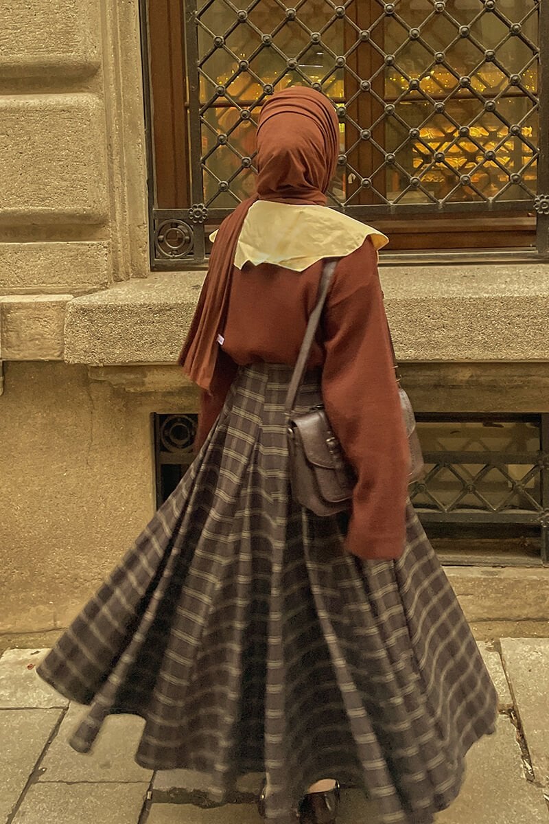 Acı Kahve Ekose Parçalı Etek