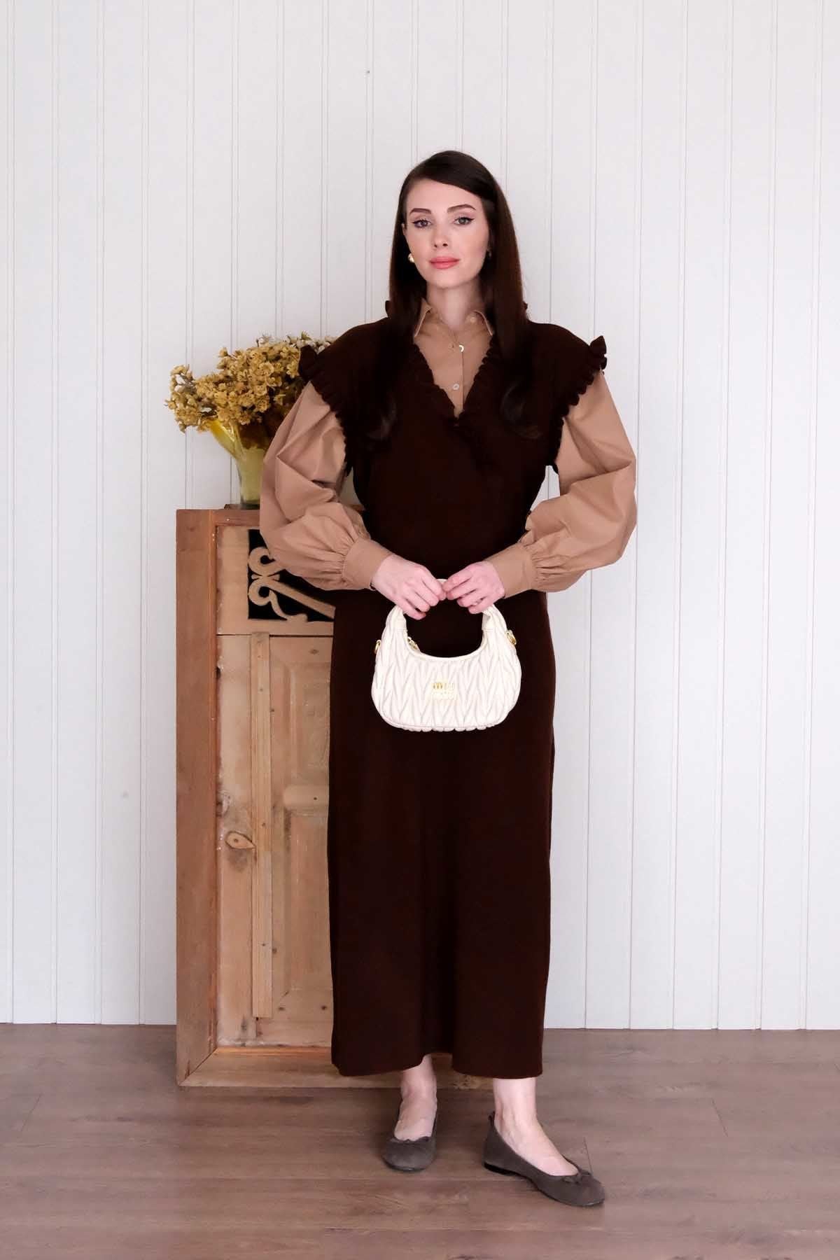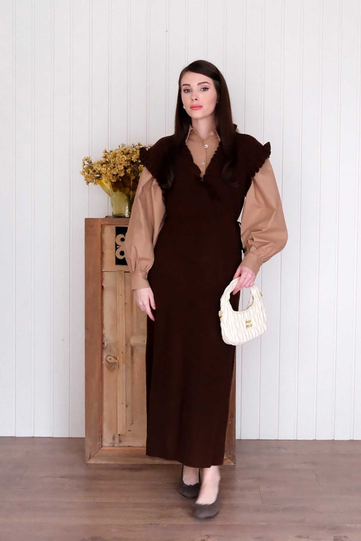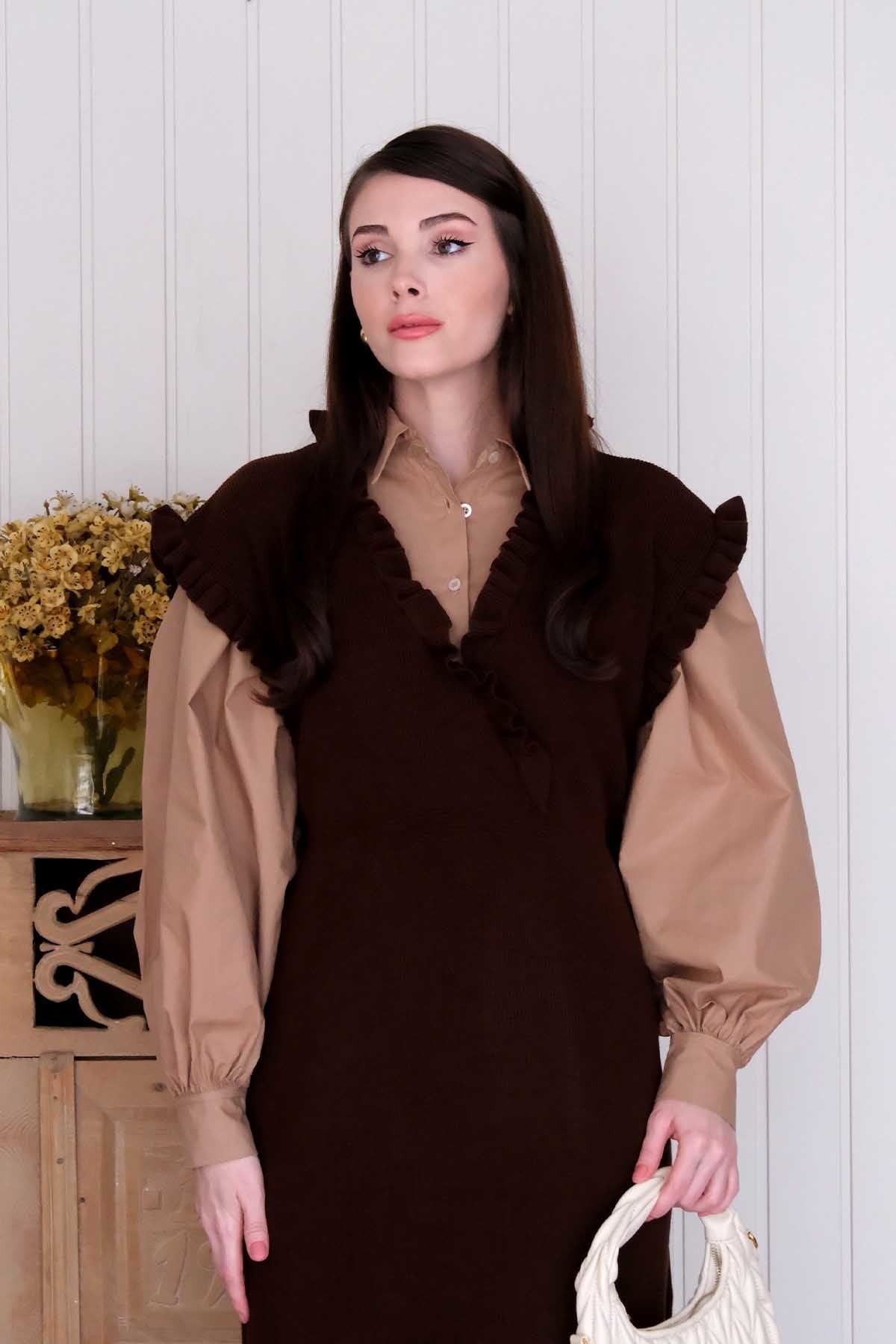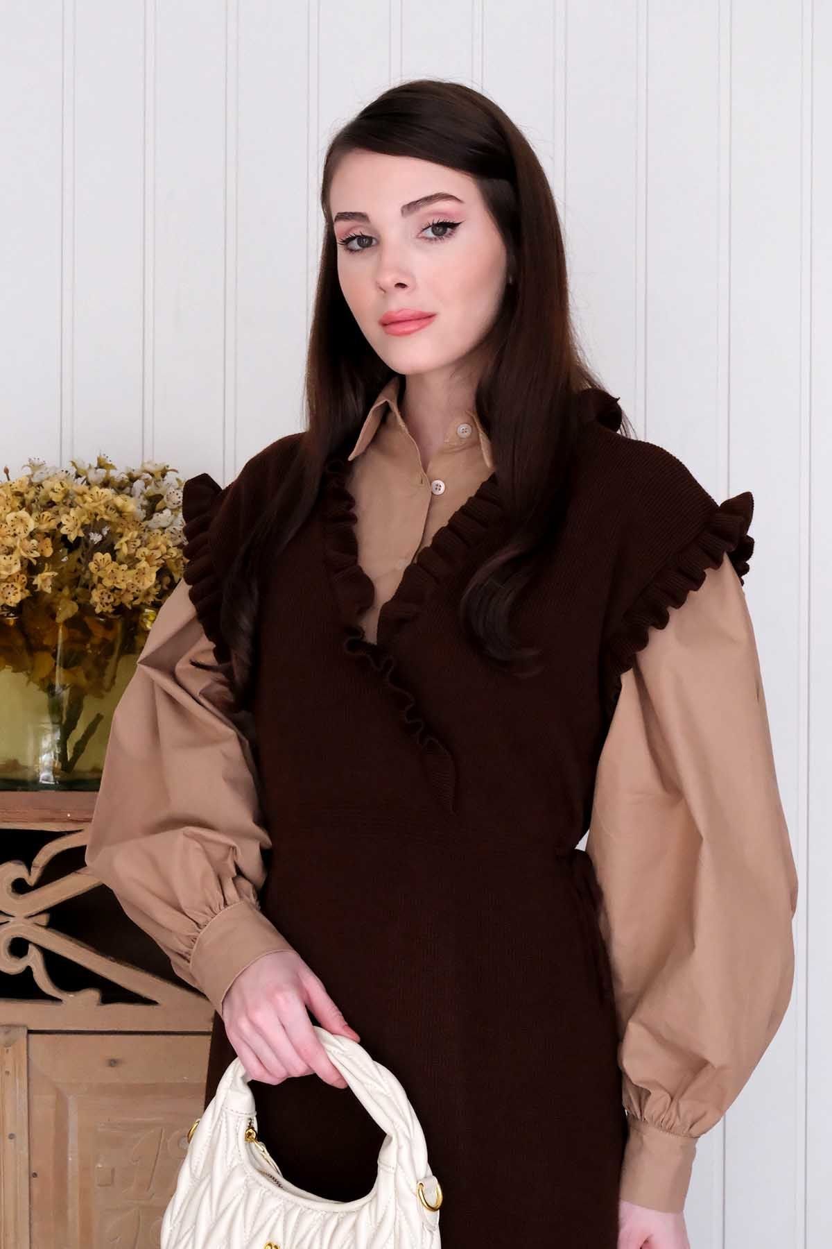Acı Kahve Triko Fırfır Yaka jile
