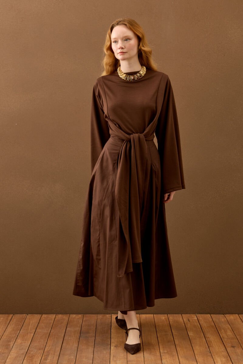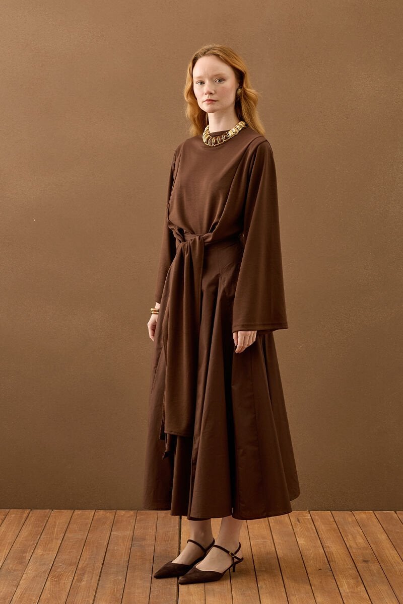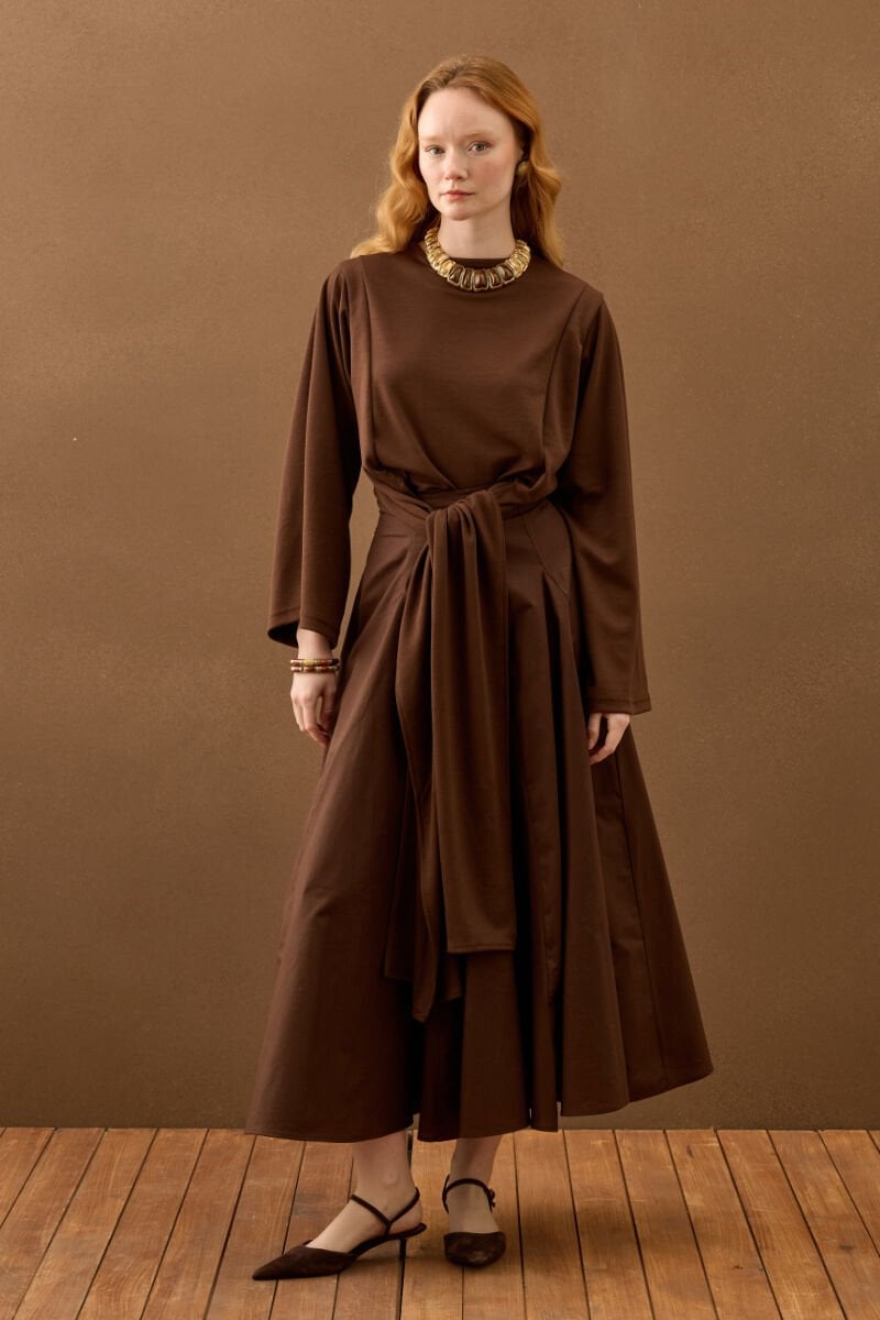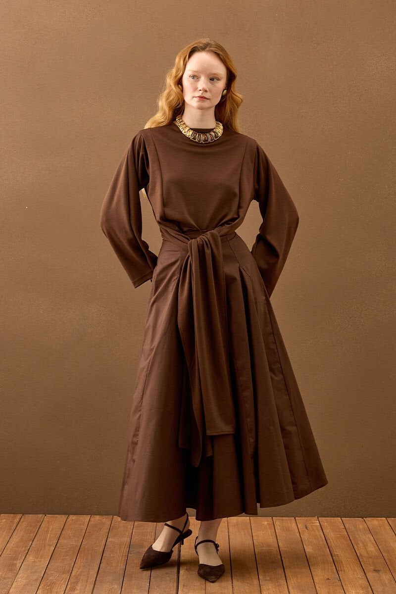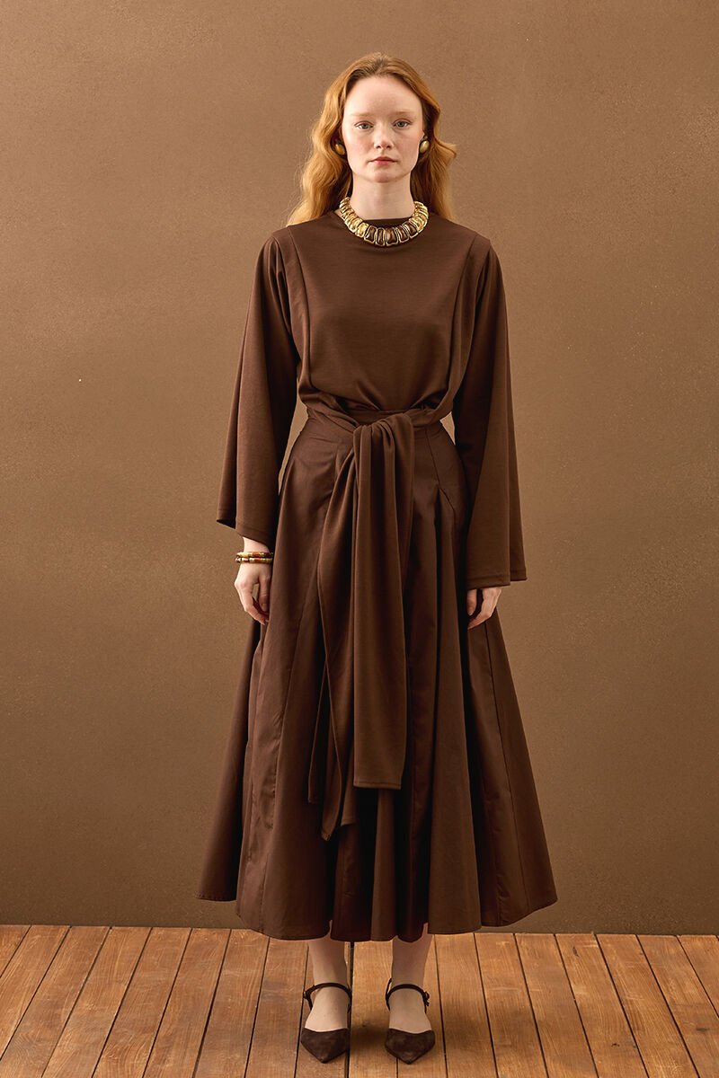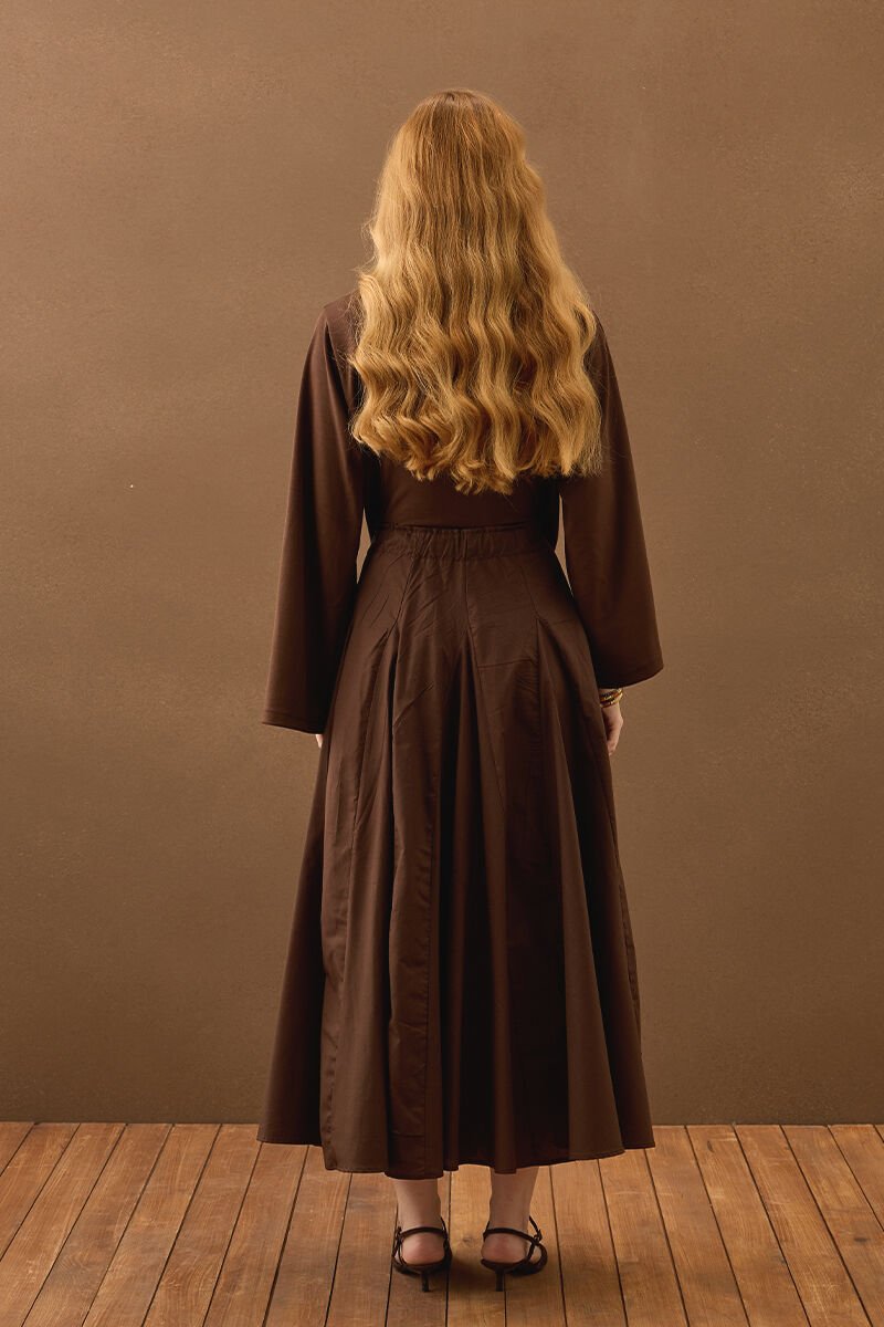 Acı Kahve Koton Parçalı Etek