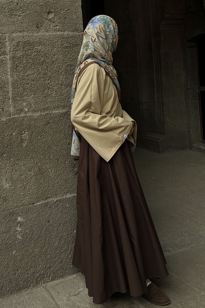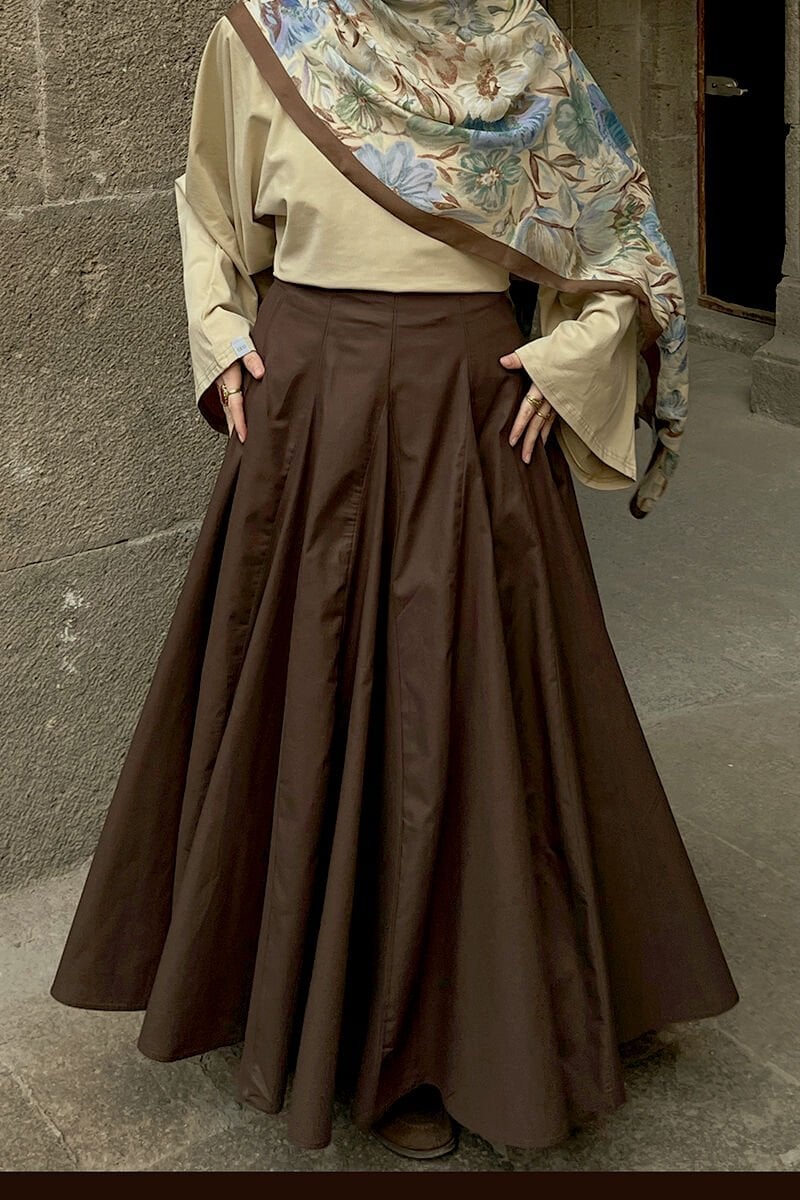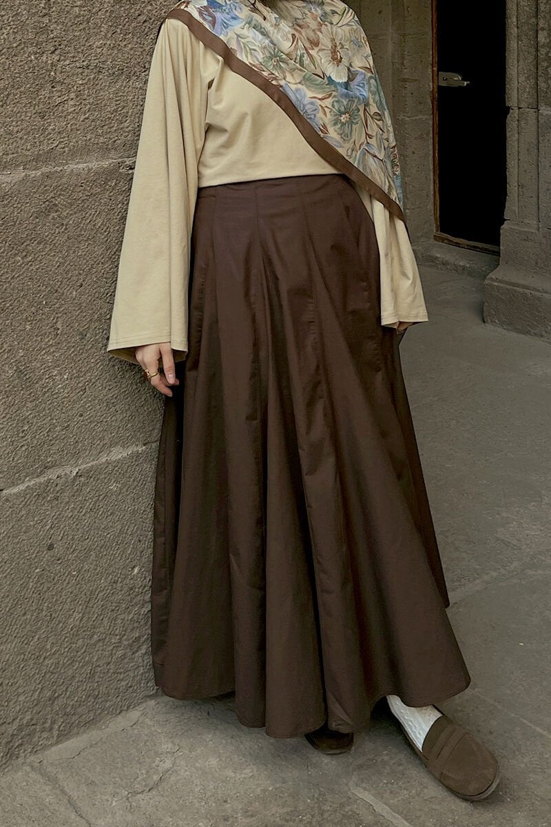 Acı Kahve Koton Parçalı Etek