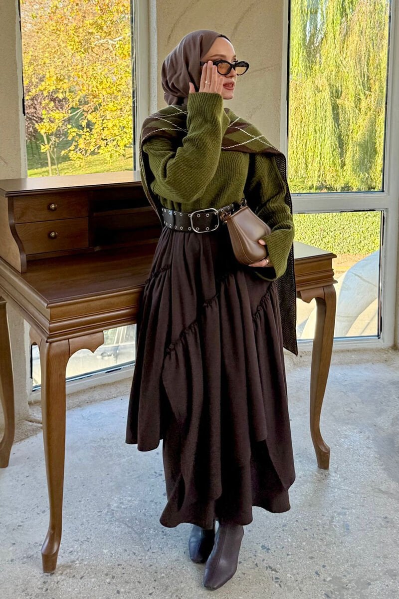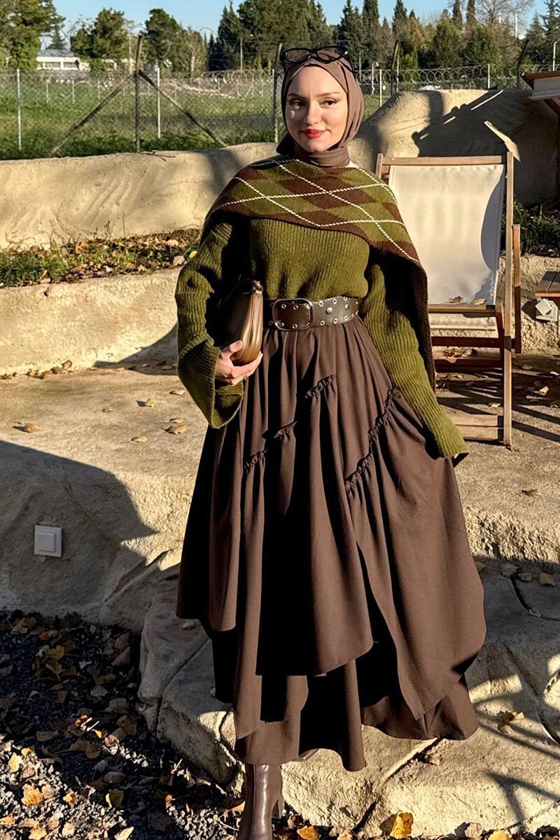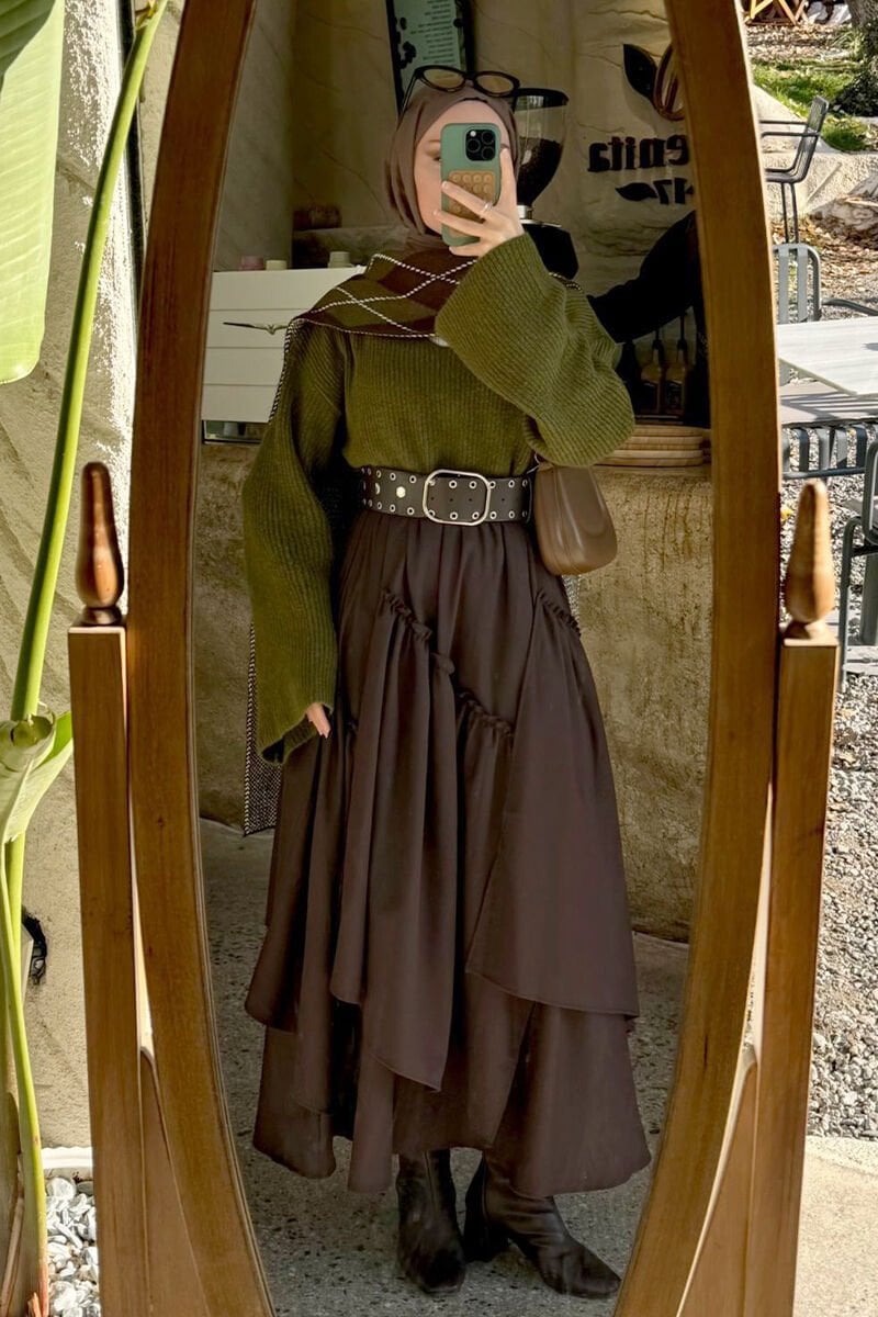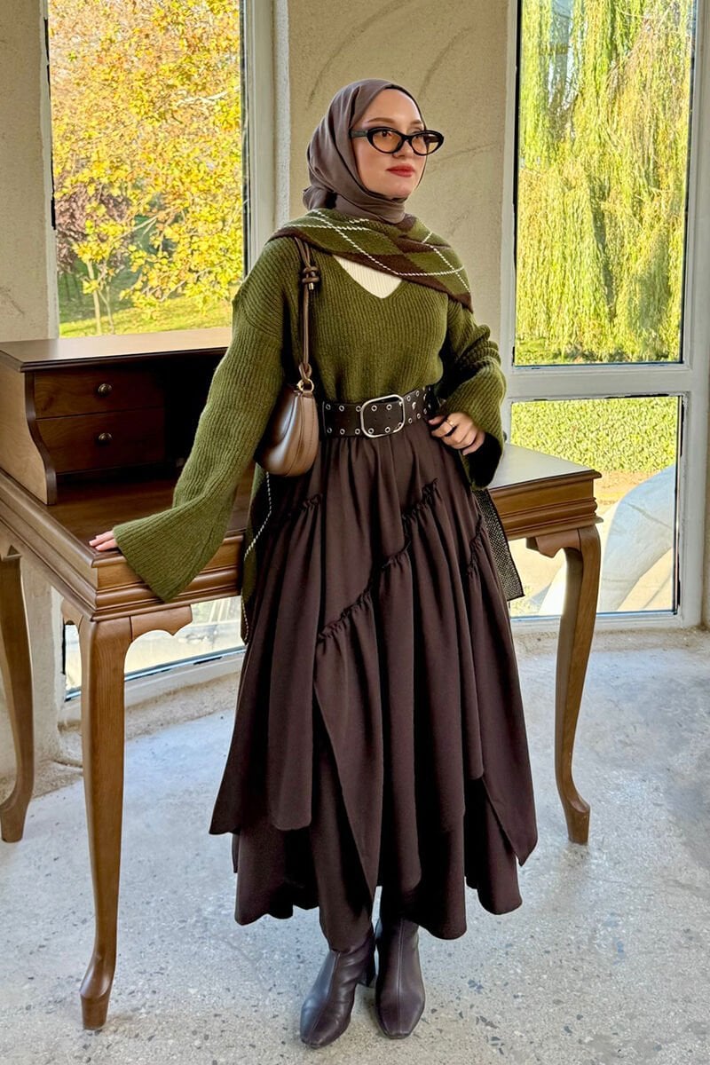Acı Kahve Koton Bohem Kat Etek