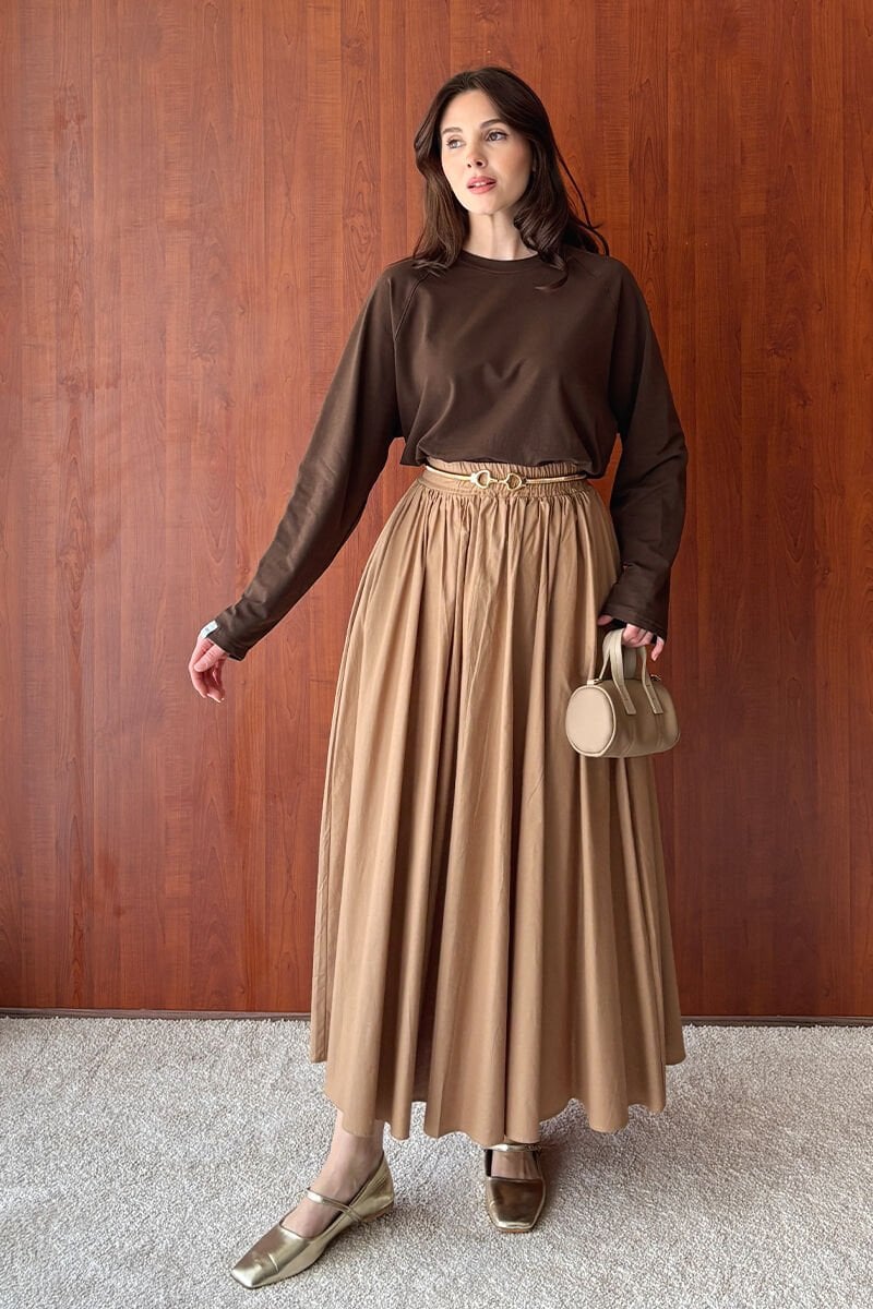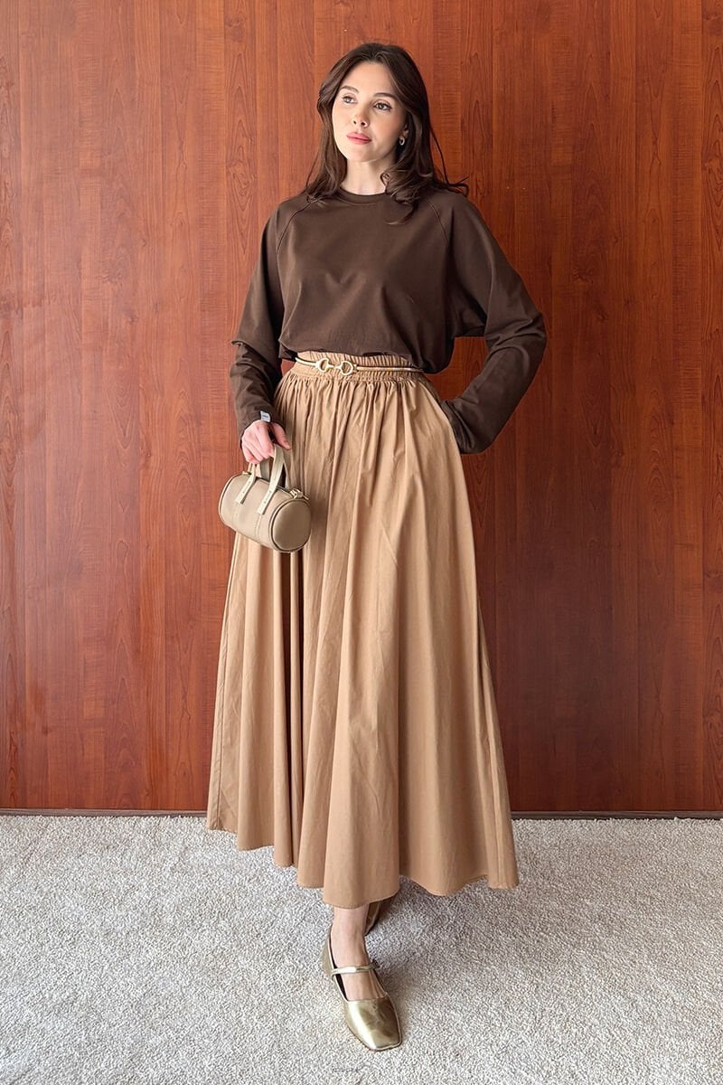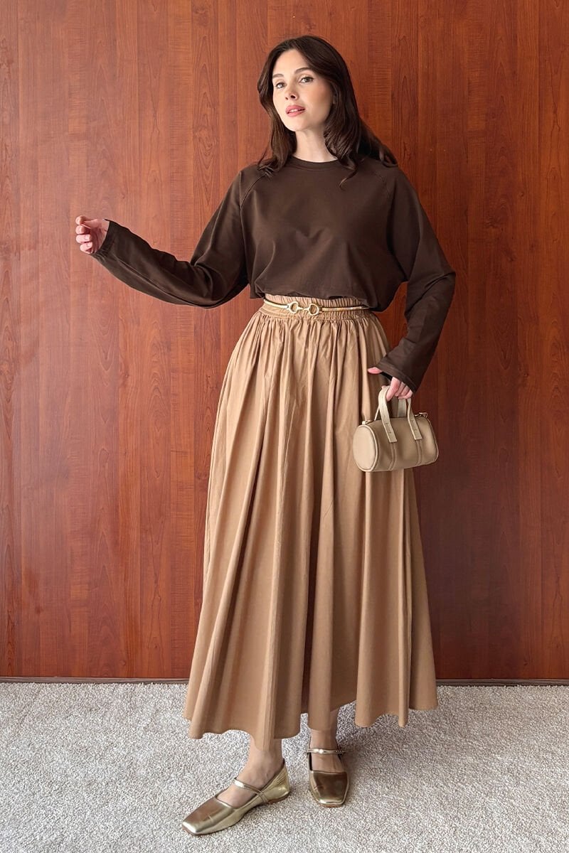 Acı Kahve Süprem Reglan Kol Body & Sütlü Kahve Kraşlı Balon Etek Takım