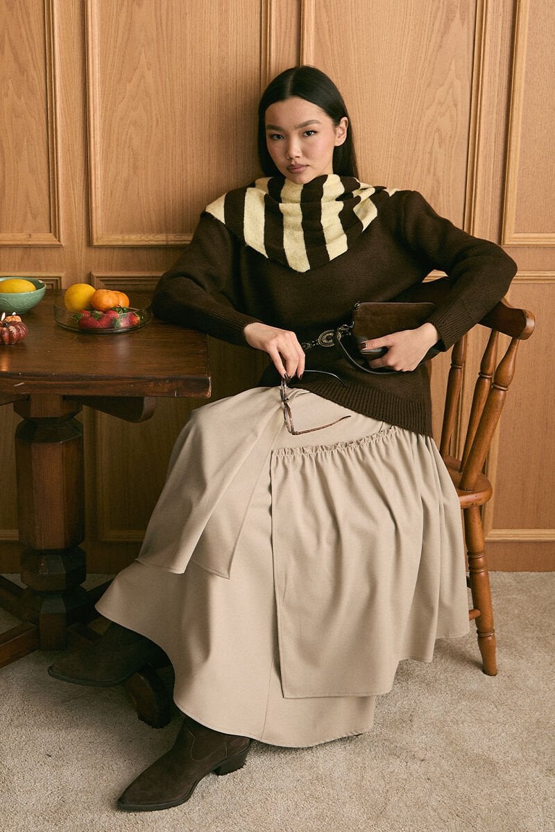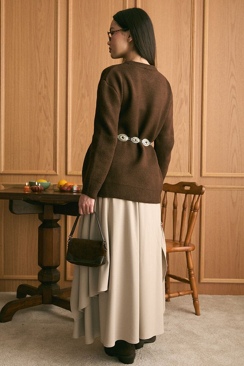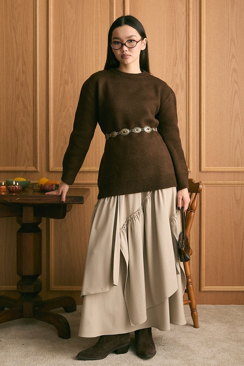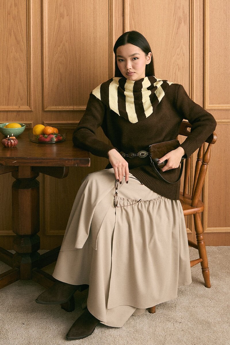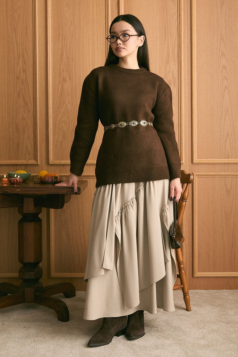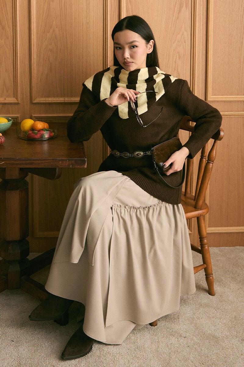 Acı Kahve Triko Kazak & Vizon Poliviskon Bohem Kat Etek Takım
