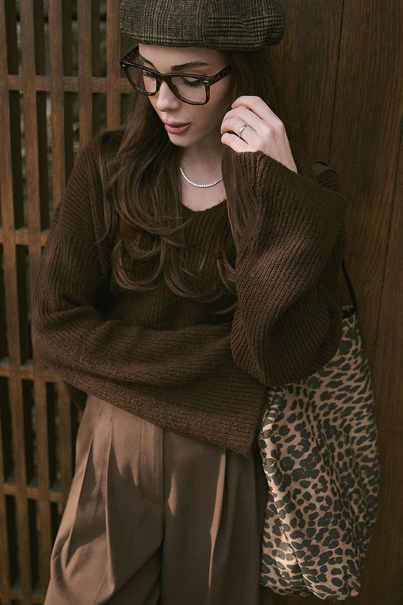 Acı Kahve V Yaka Triko Kazak