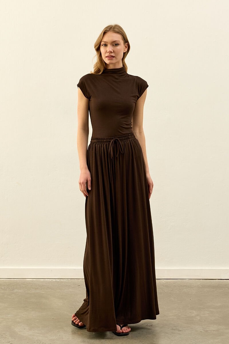 Acı Kahve Viskon Dökümlü Pantolon