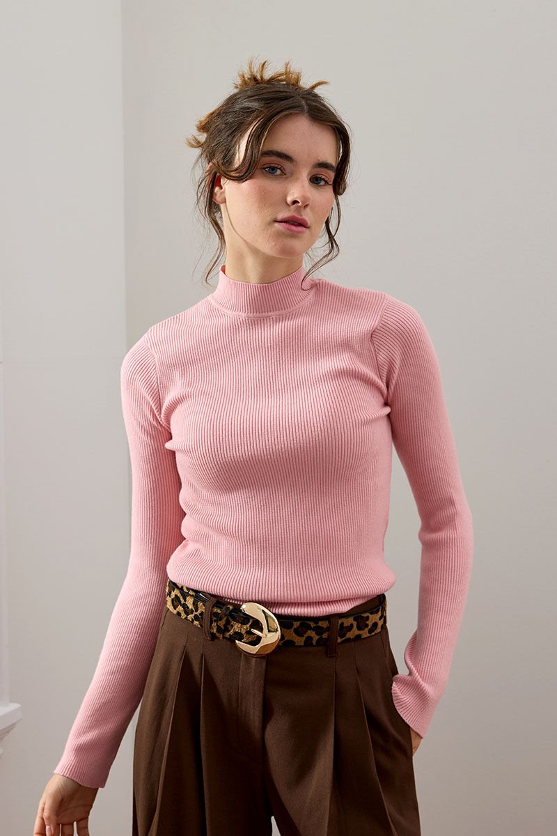 Soft Pembe Yarım Boğazlı Triko Body