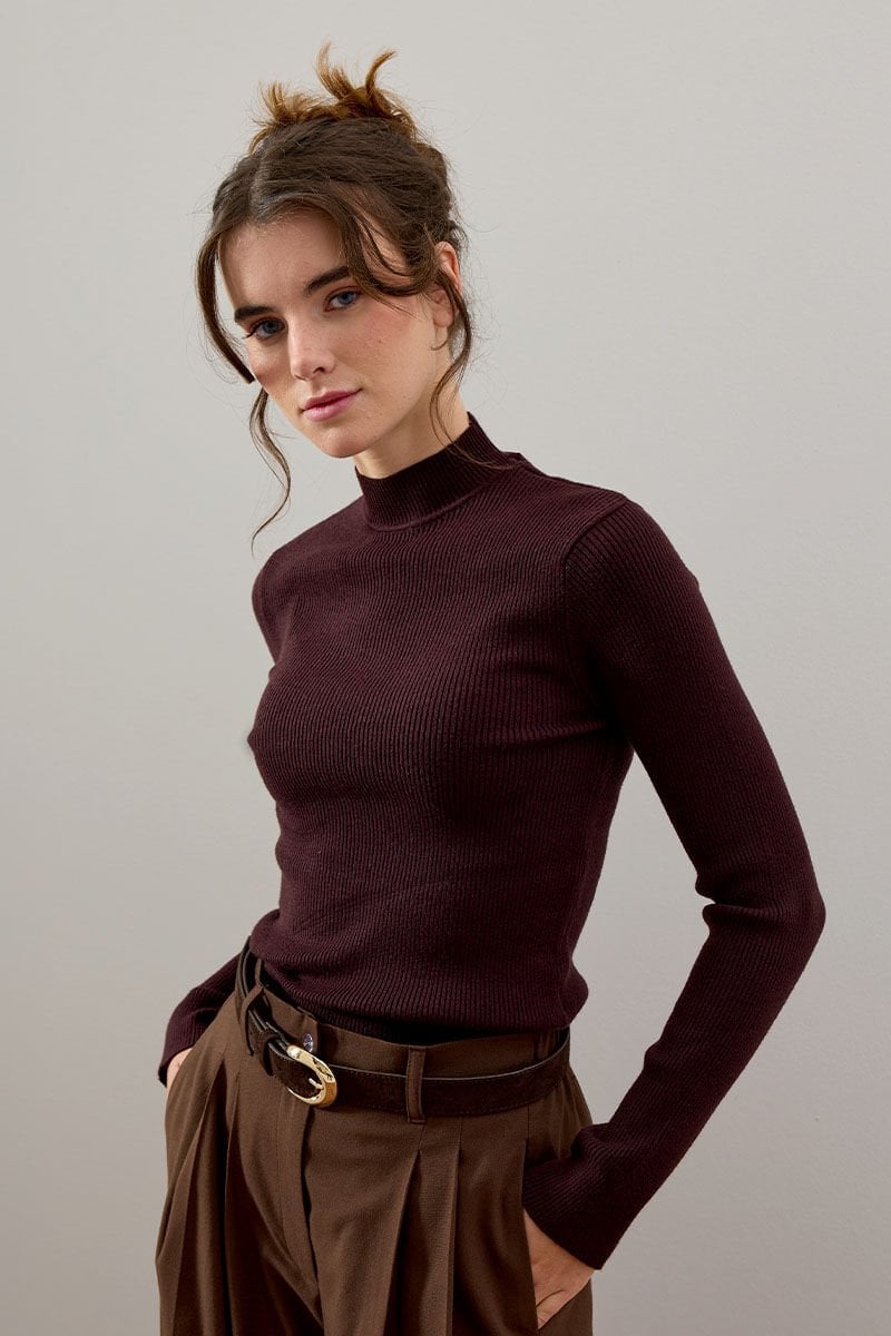Yarım boğazlı triko body, şıklığı ve konforu bir arada sunar.