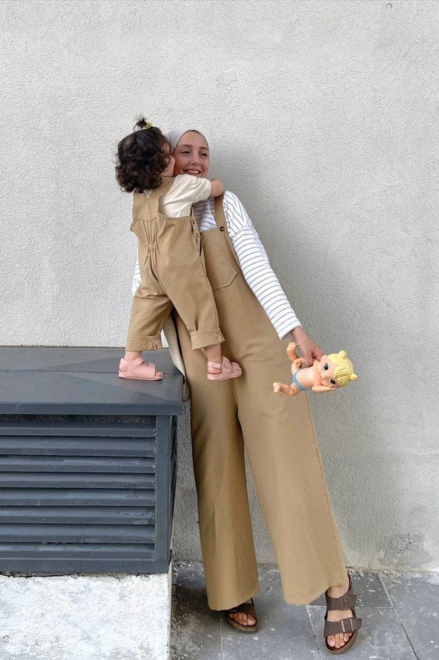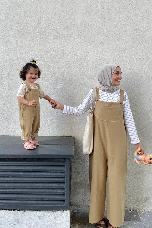 Anne - Çocuk Sütlü Kahve Duck Keten Salopet Tulum