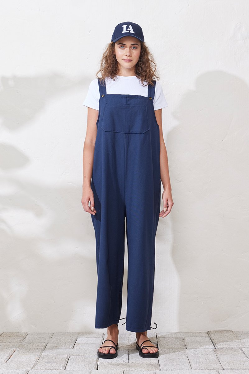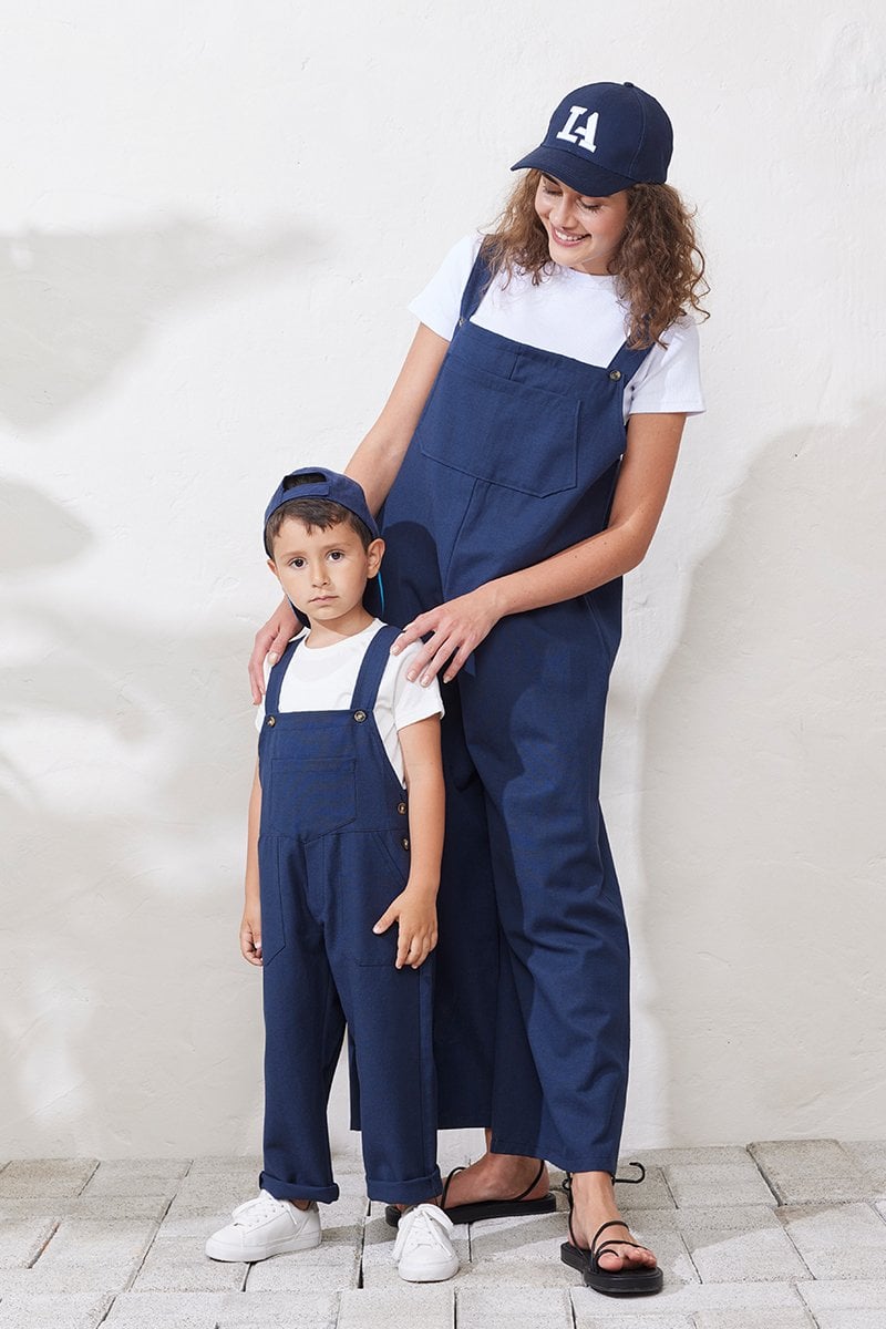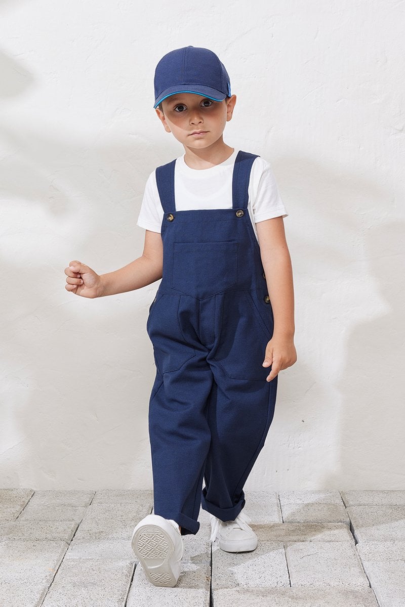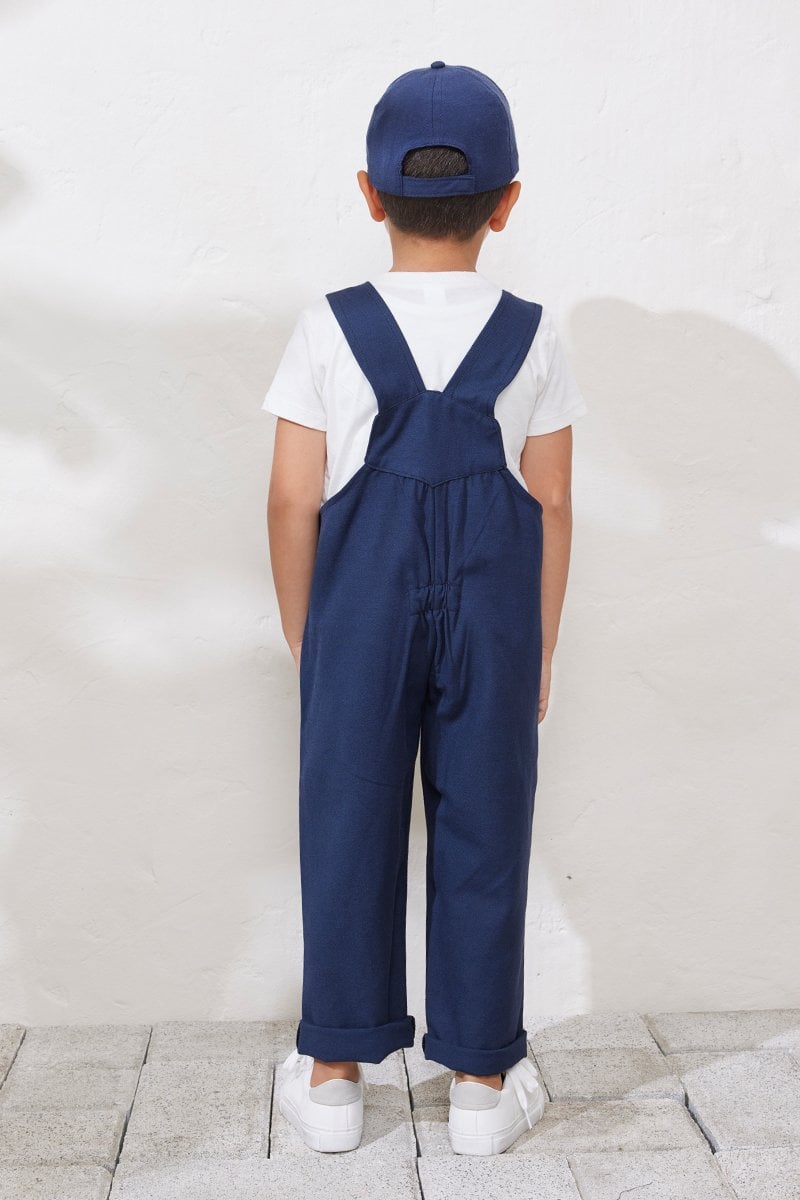 Anne - Çocuk Lacivert Keten Salopet Tulum