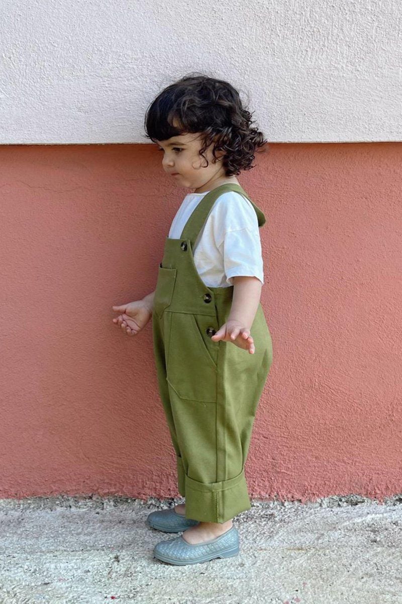 Anne - Çocuk Yağ Yeşili Duck Keten Salopet Tulum & Anne - Çocuk Ekru Body