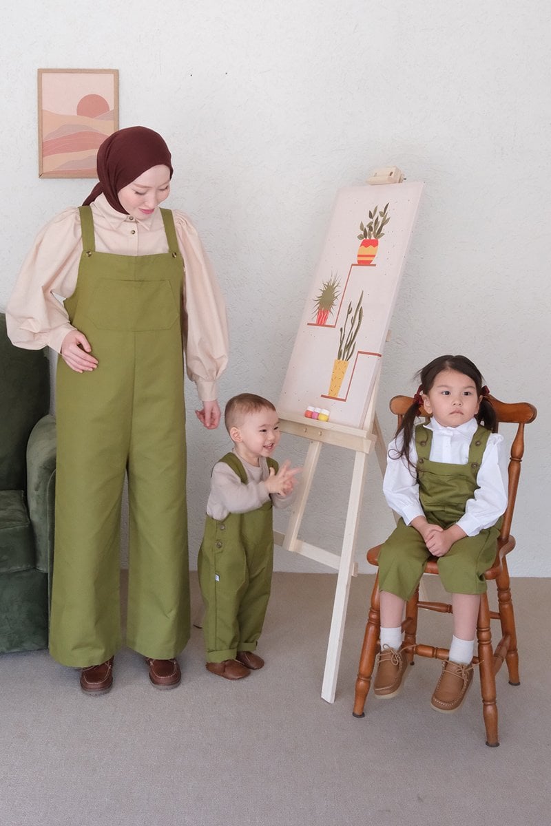 Anne - Çocuk Yağ Yeşili Duck Keten Tulum