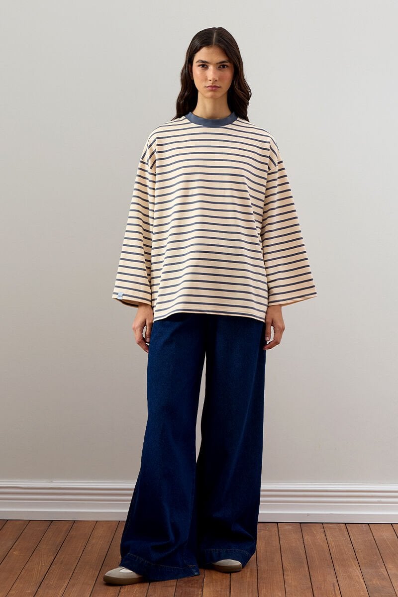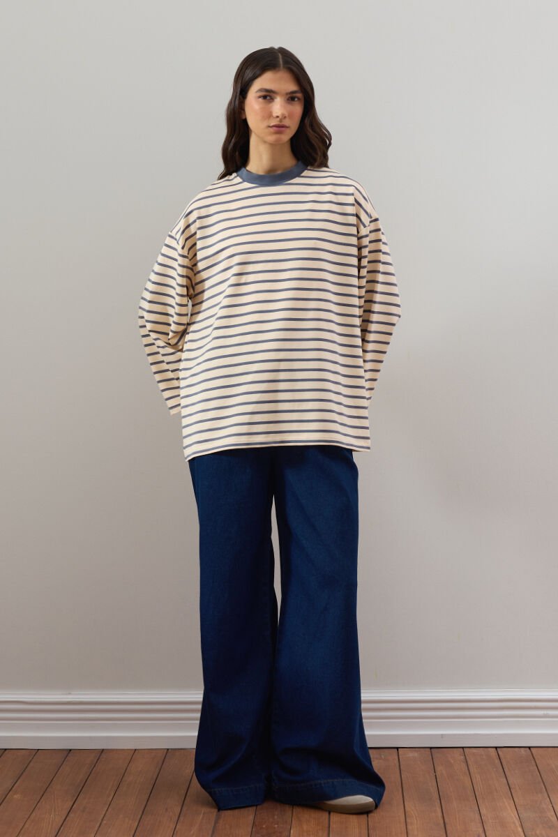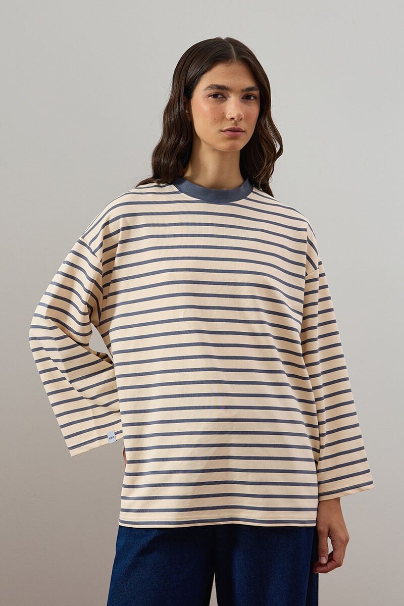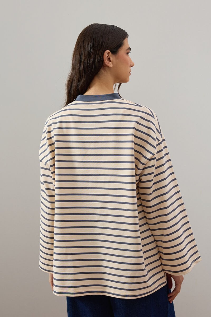 Çizgili tasarımı şıklık katarken, dayanıklı yapısıyla sık yıkamalara dayanıklıdır.