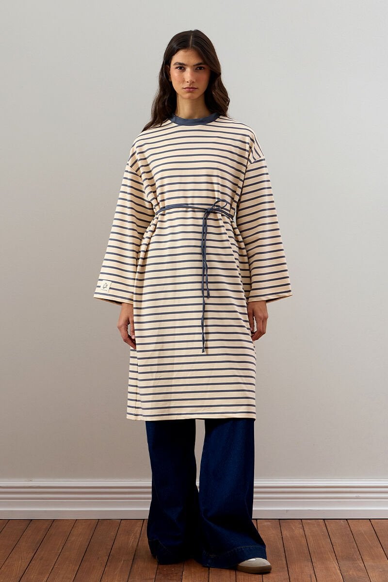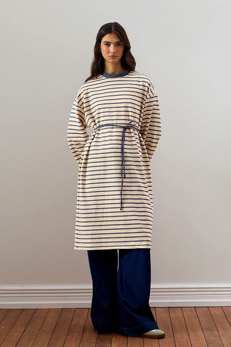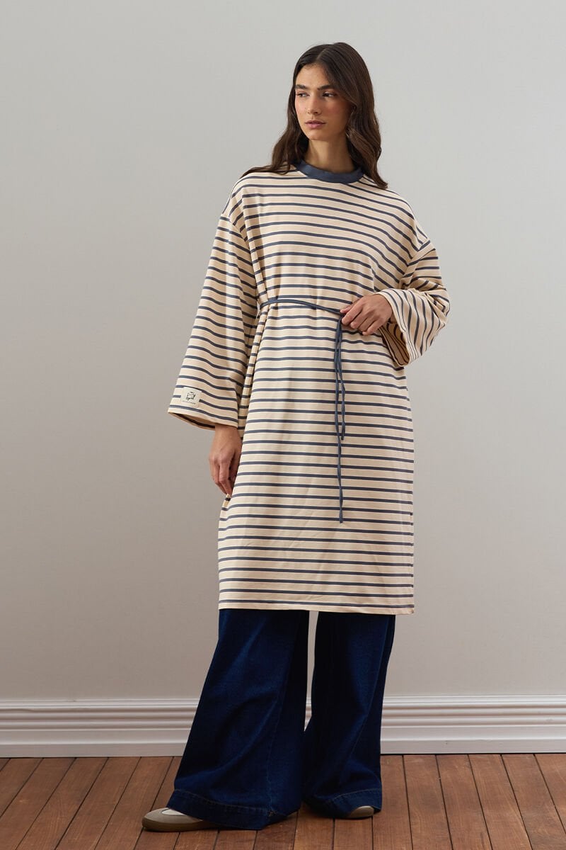 Antrasit 2 İplik Tesettür Çizgili Tunik