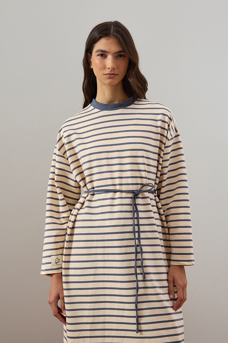 Çizgili tasarımı şıklık katarken, dayanıklı yapısıyla sık yıkamalara dayanıklıdır.