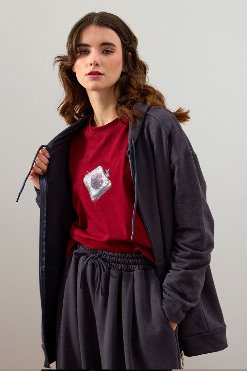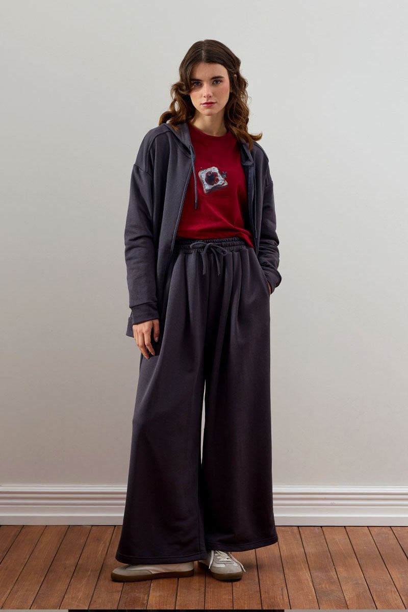 Antrasit 3 İplik Uzun Fermuarlı Eşofman Takım