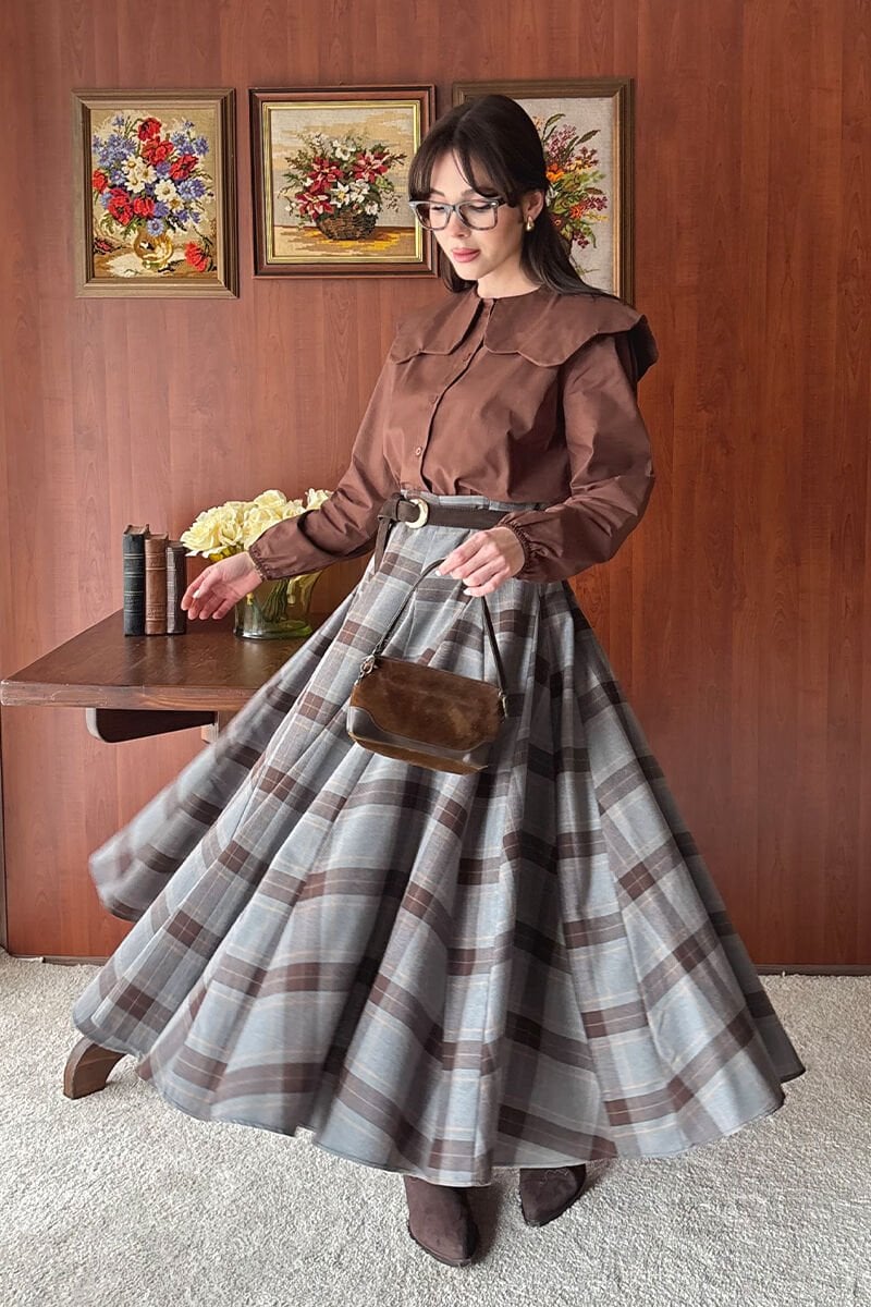 Antrasit Ekoseli Parçalı Etek