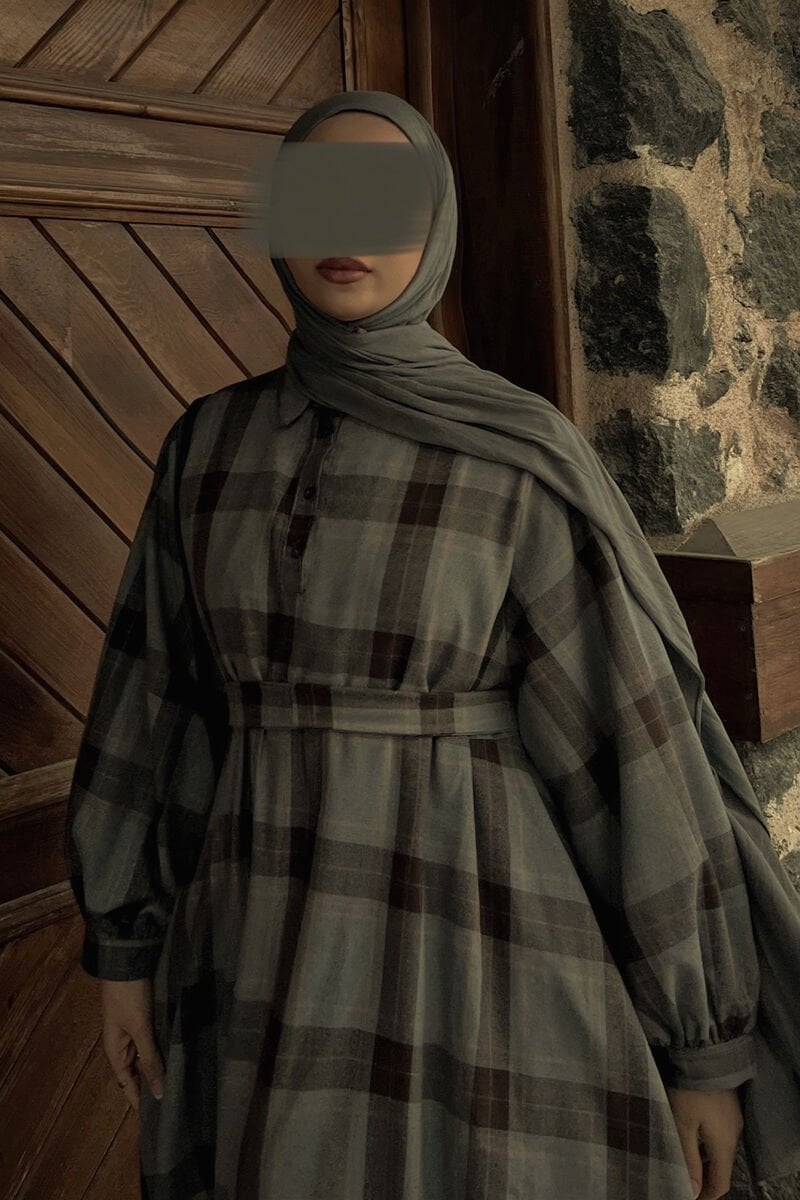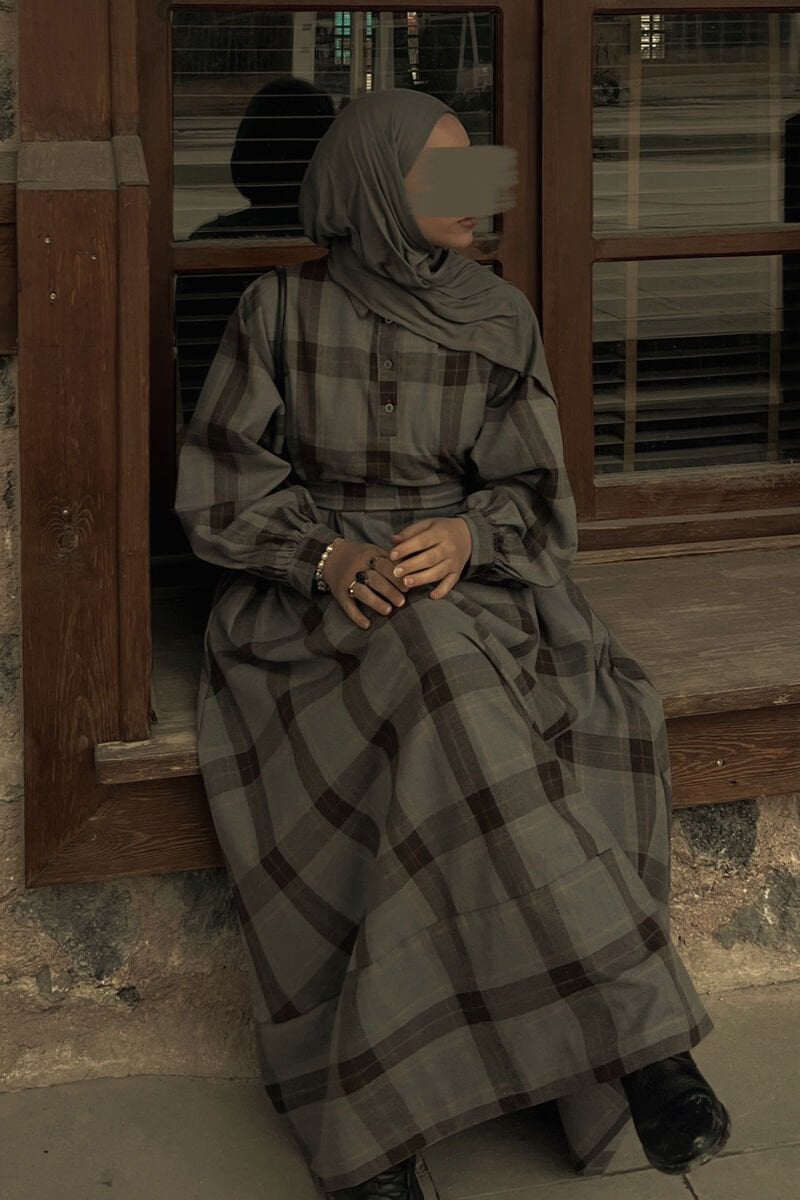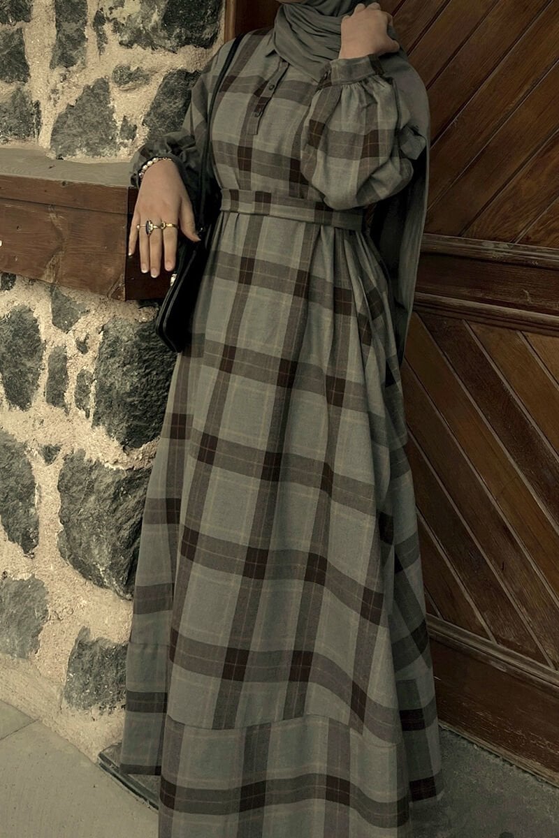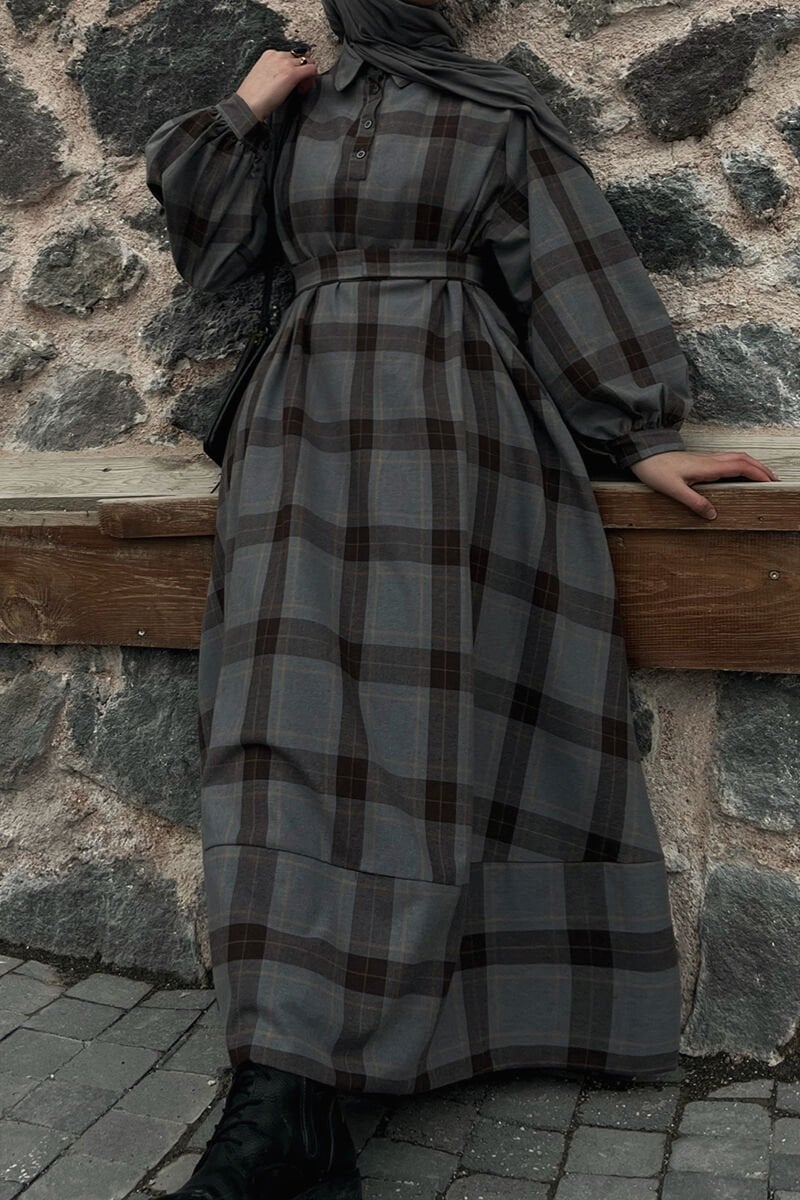Antrasit Ekoseli Vintage Elbise / zarifmehlika