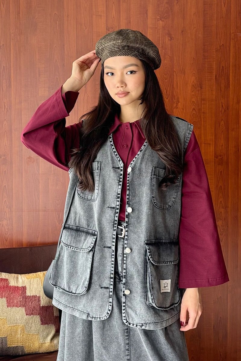 Antrasit Kargo Cepli Kot Yelek Ceylan Otantik'in seçimi Antrasit Kargo Cepli Kot Yelek. Vintage ve tesettür kadın giyim şıklığı uygun fiyatlı parçalarla Yelek Koleksiyonu'nda! CEO000001215 Antrasit Kargo Cepli Kot Yelek