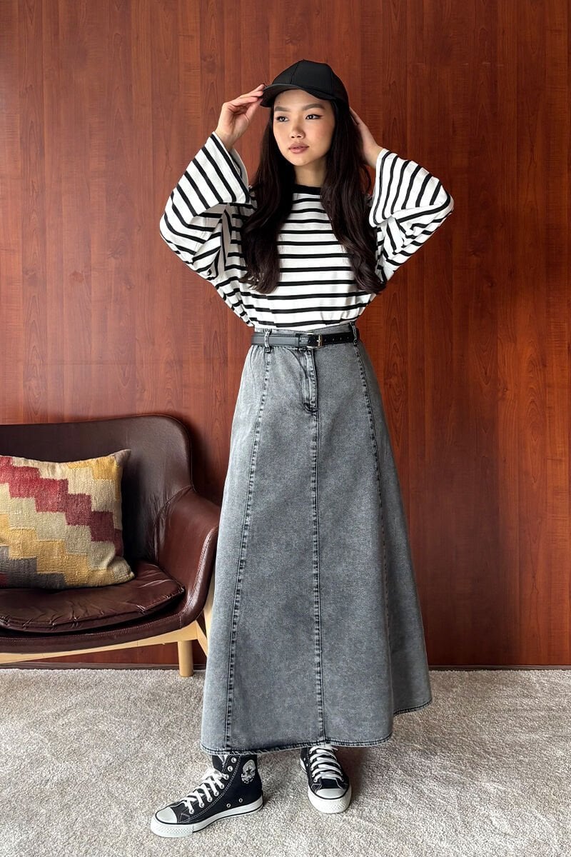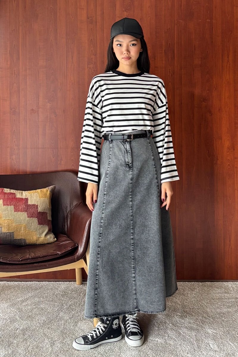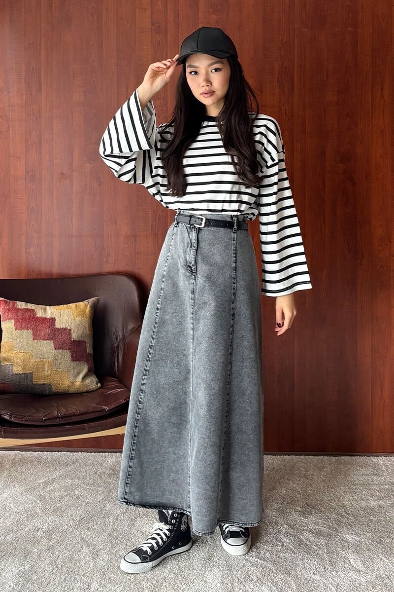 Bu muhteşem kot piliseli korsaj etek, şıklığı ve rahatlığı bir arada sunar.