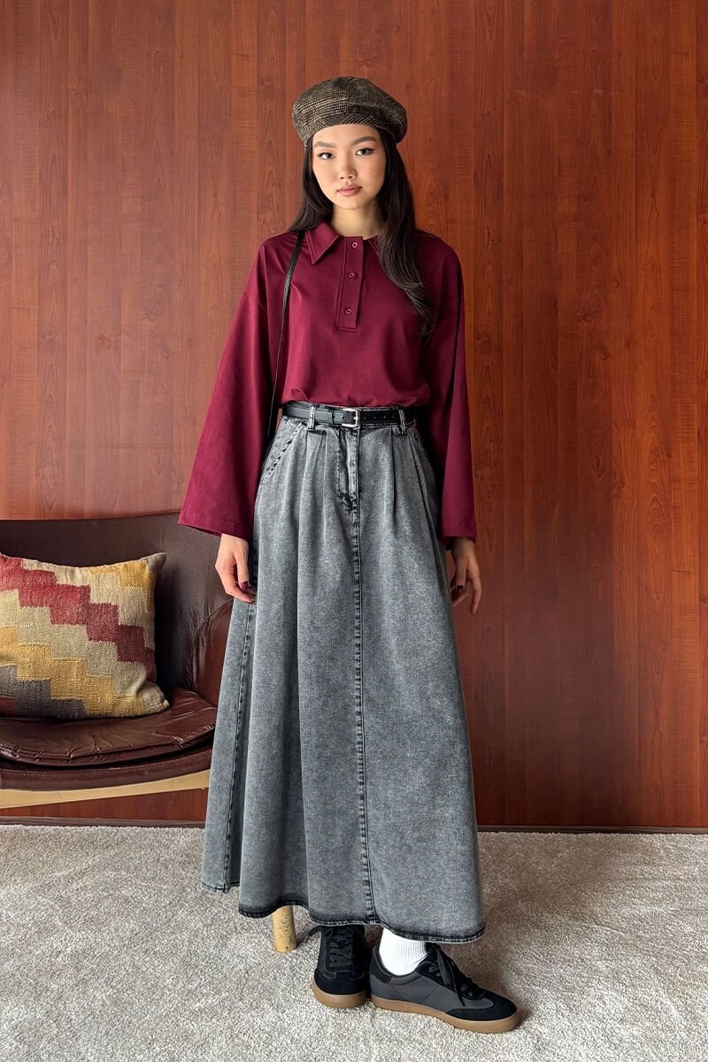 Antrasit Kot Tek Düğmeli Etek