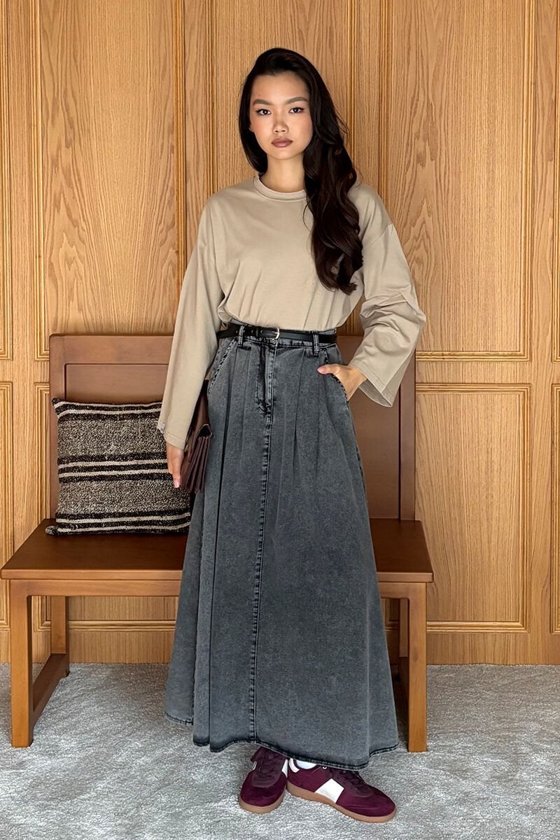 Antrasit Kot Tek Düğmeli Etek