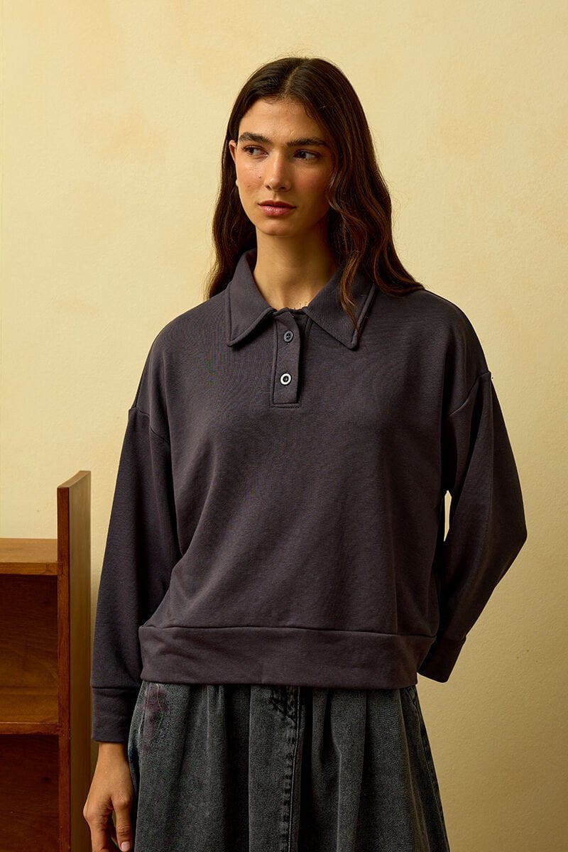 Antrasit Polo Yaka Crop