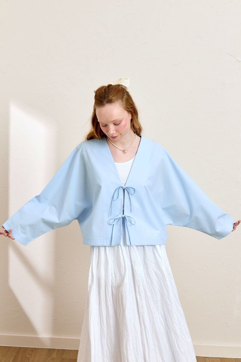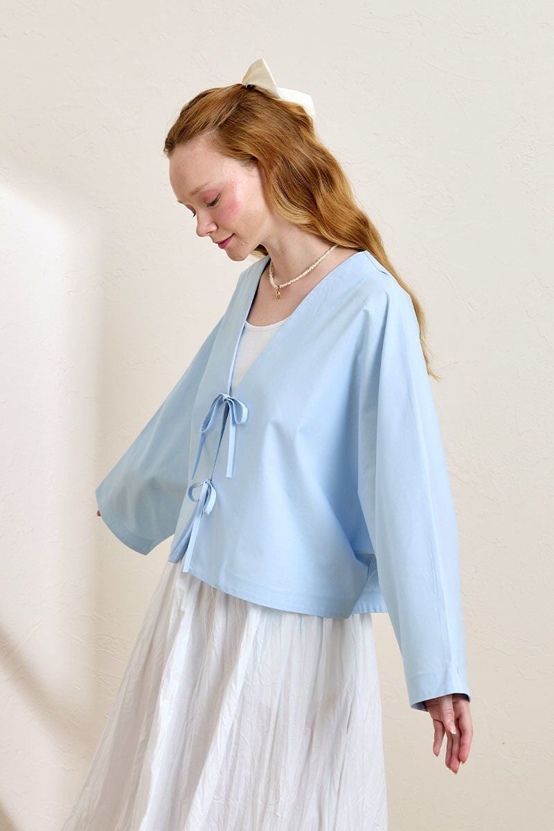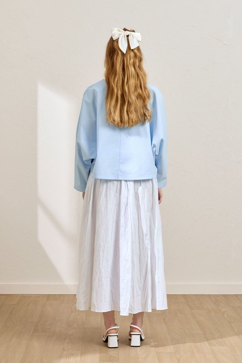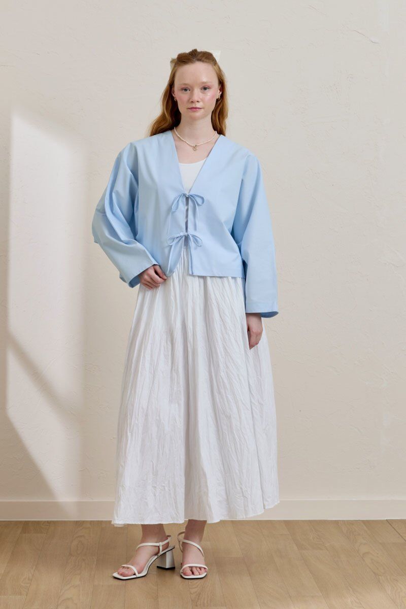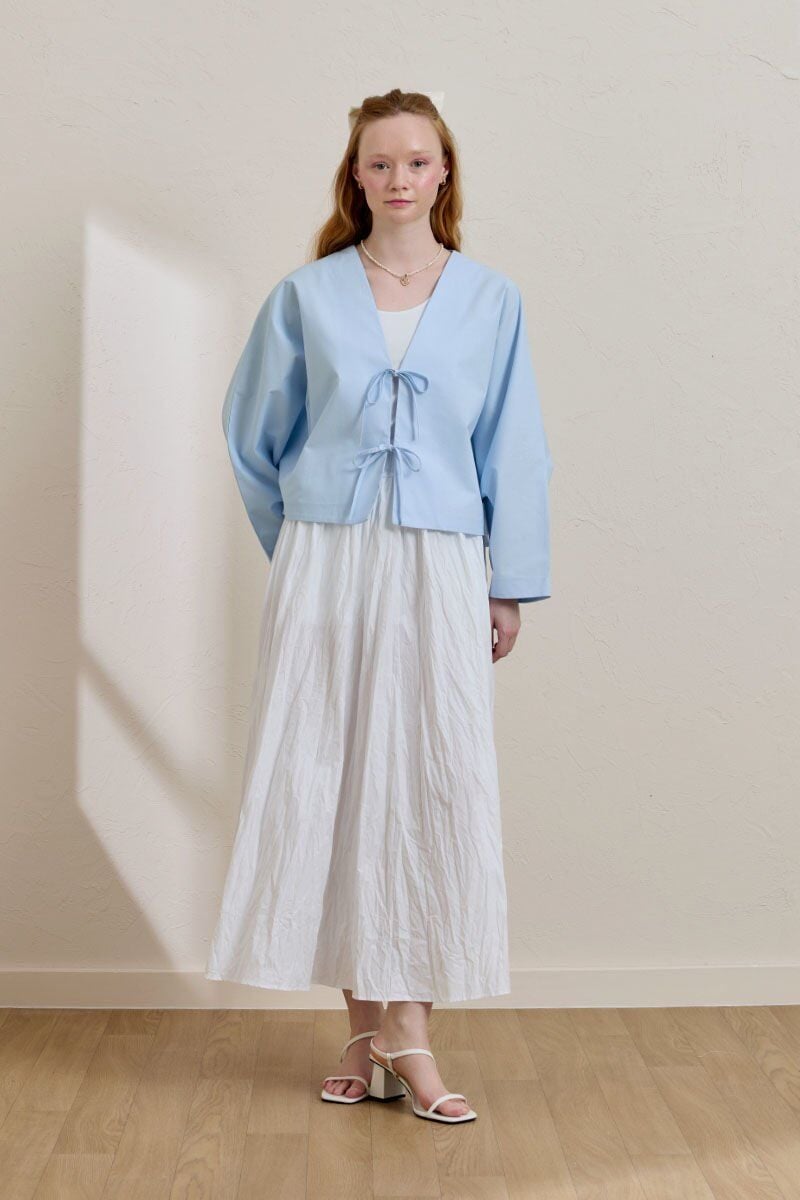 Soft Mavi 2 Fiyonklu Ceket & Beyaz Kraşlı Balon Etek Takım