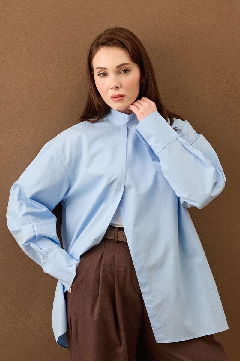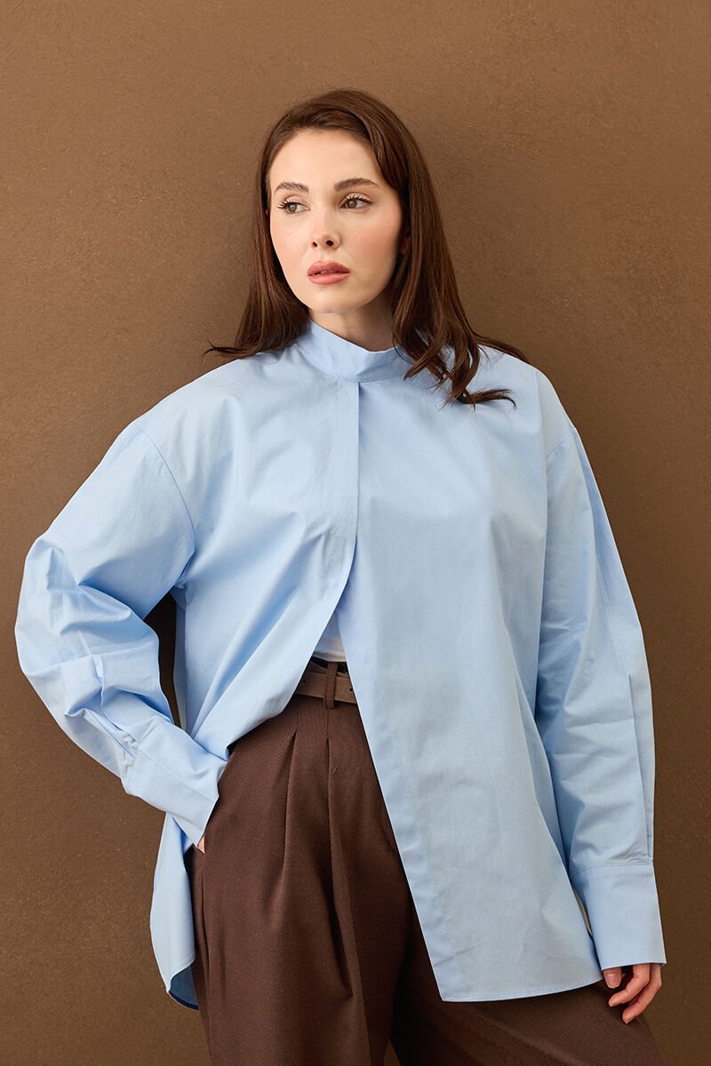 Buz Mavisi Ön Yırtmaçlı Gömlek