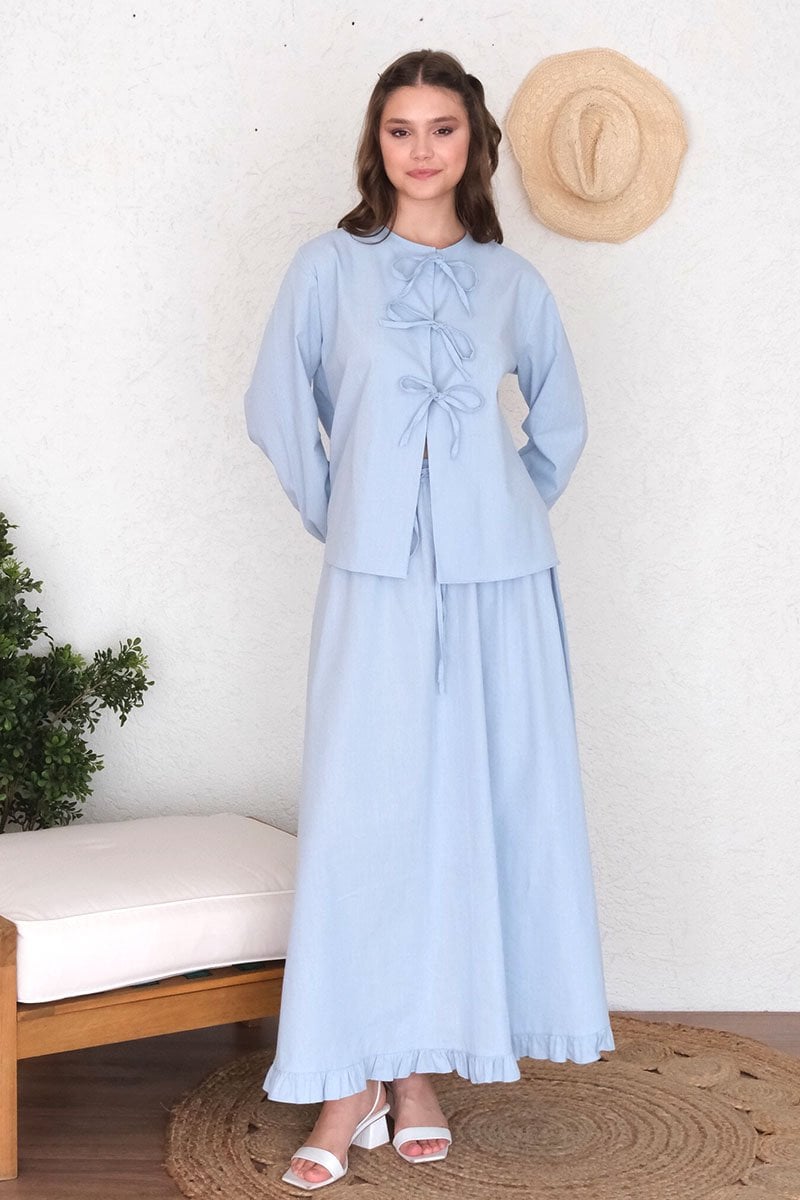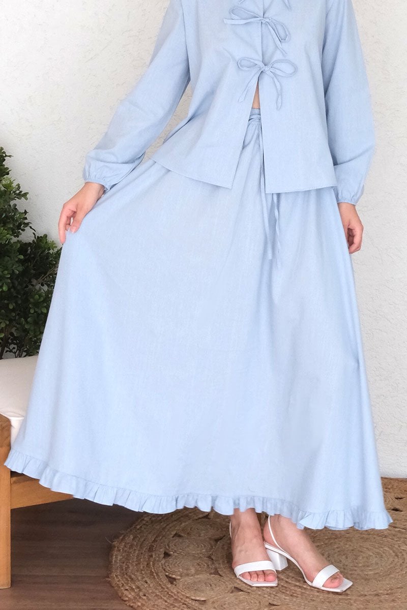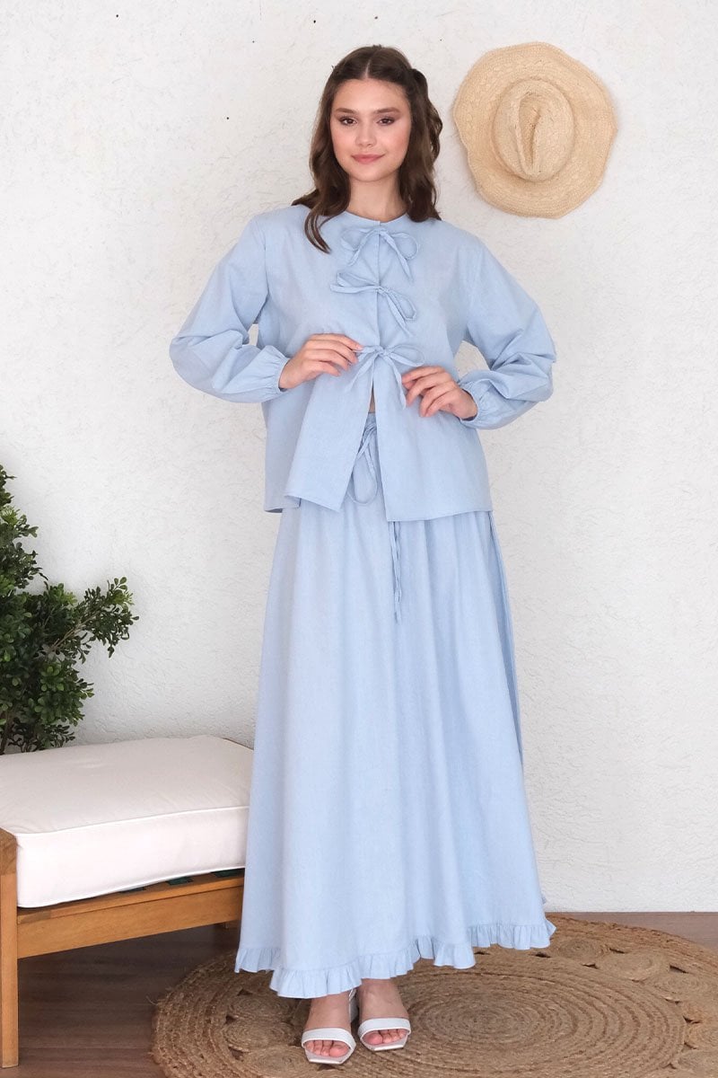 Bebe Mavisi Organik Keten Eteği Fırfırlı Etek