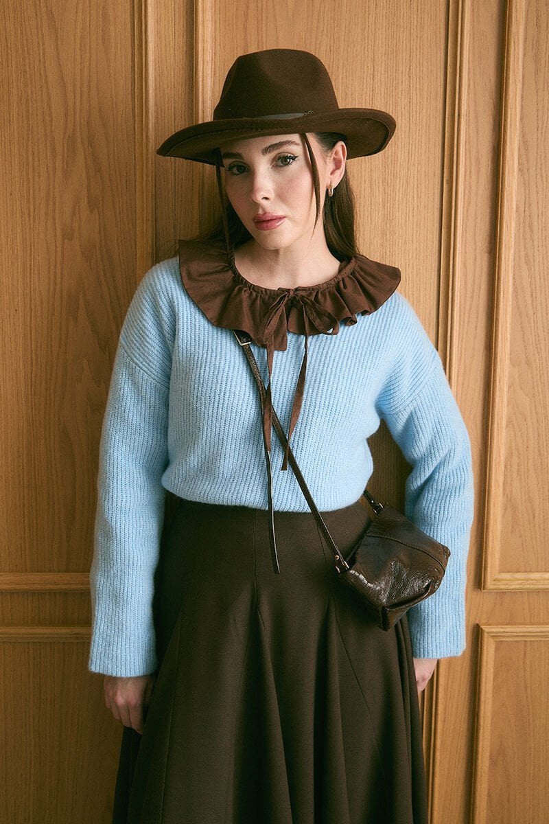 Bebe Mavisi V Yaka Triko Kazak & Acı Kahve Parçalı Etek Takım