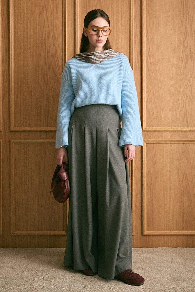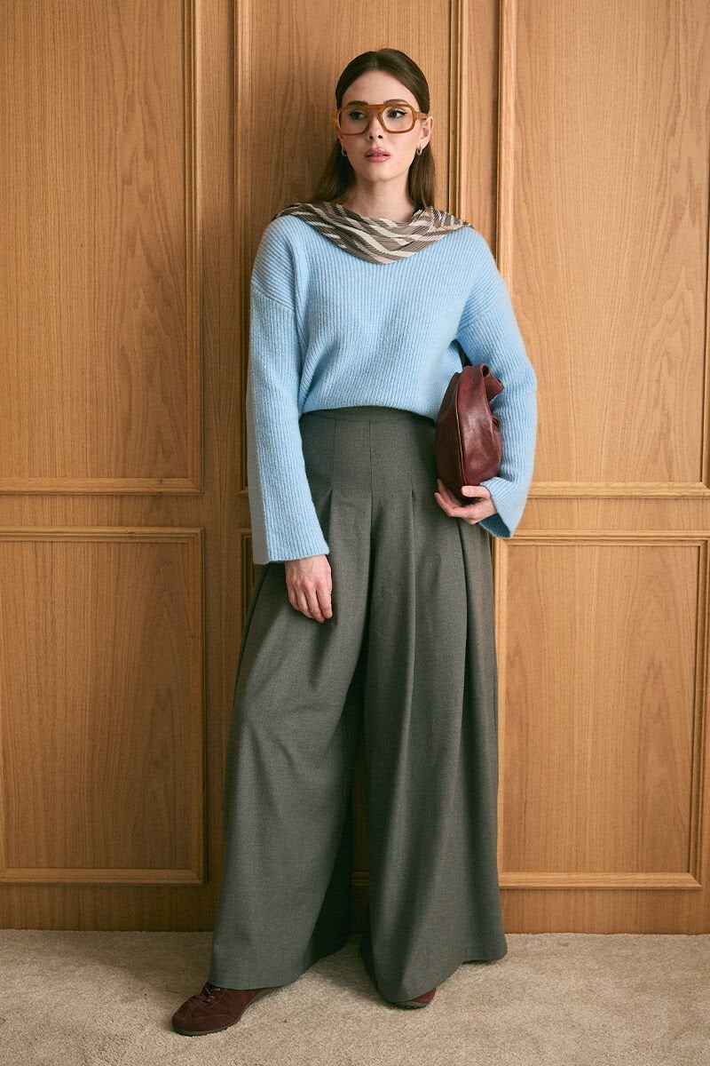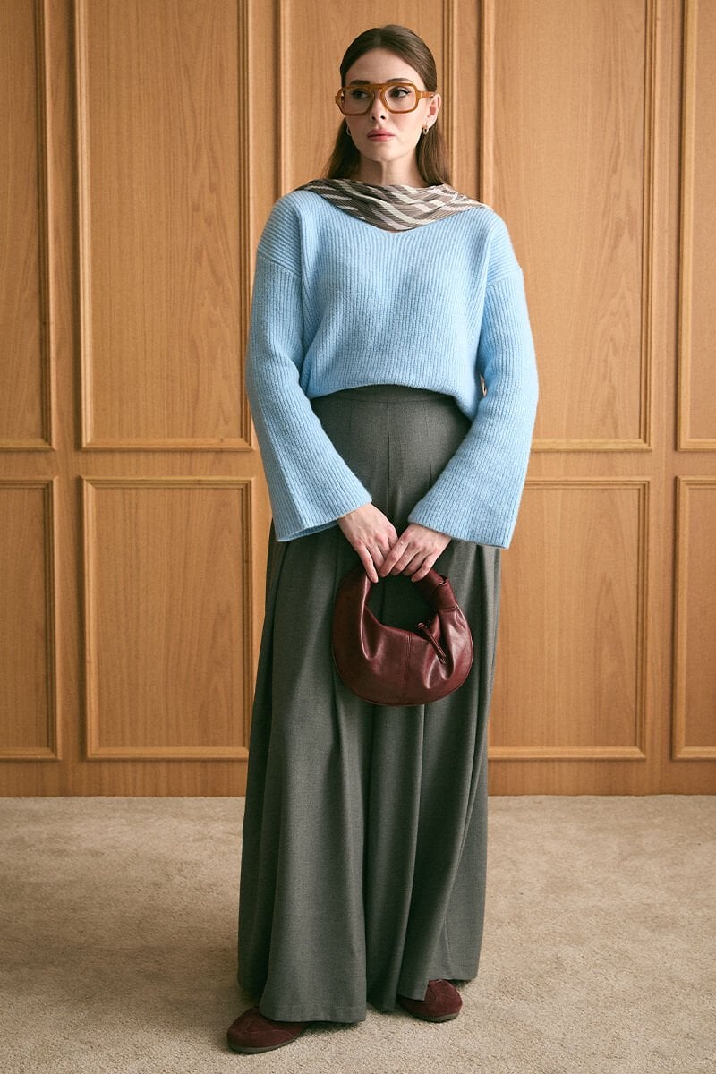 Bebe Mavisi V Yaka Triko Kazak & Antrasit Pile Detay Bol Paça Pantolon Takım