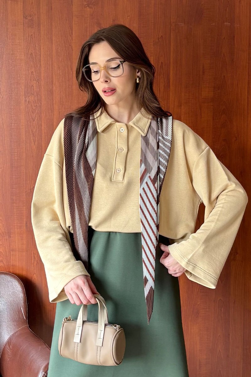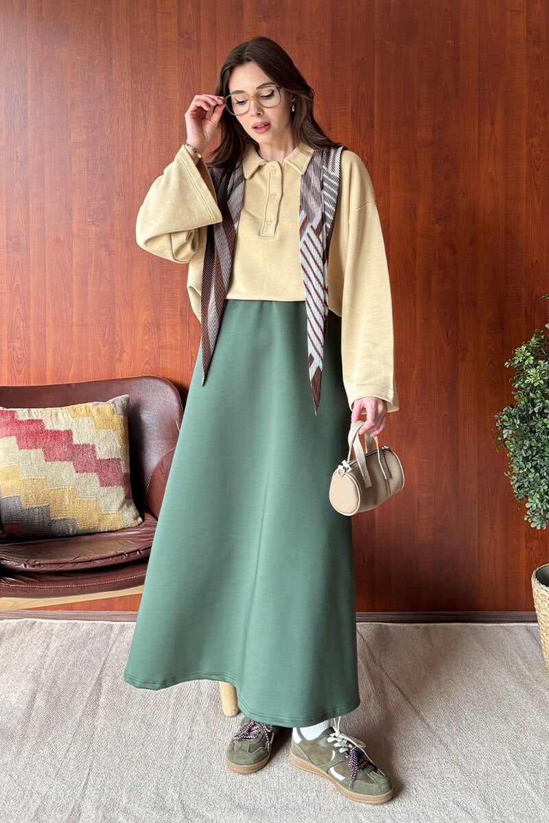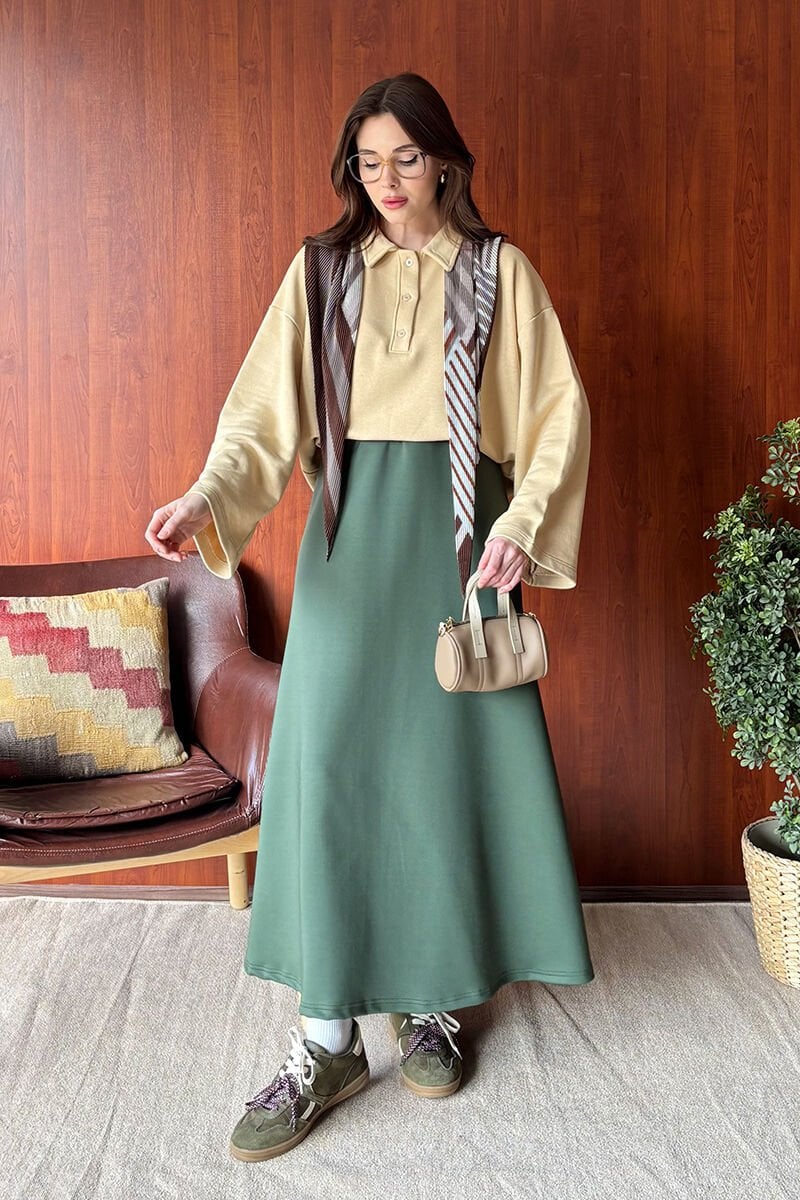 Bej 3 İplik Polo Yaka Body & Haki Scuba Etek Takım