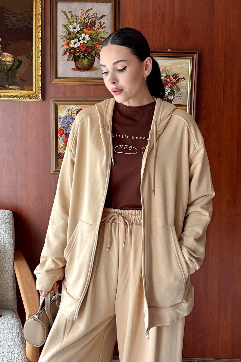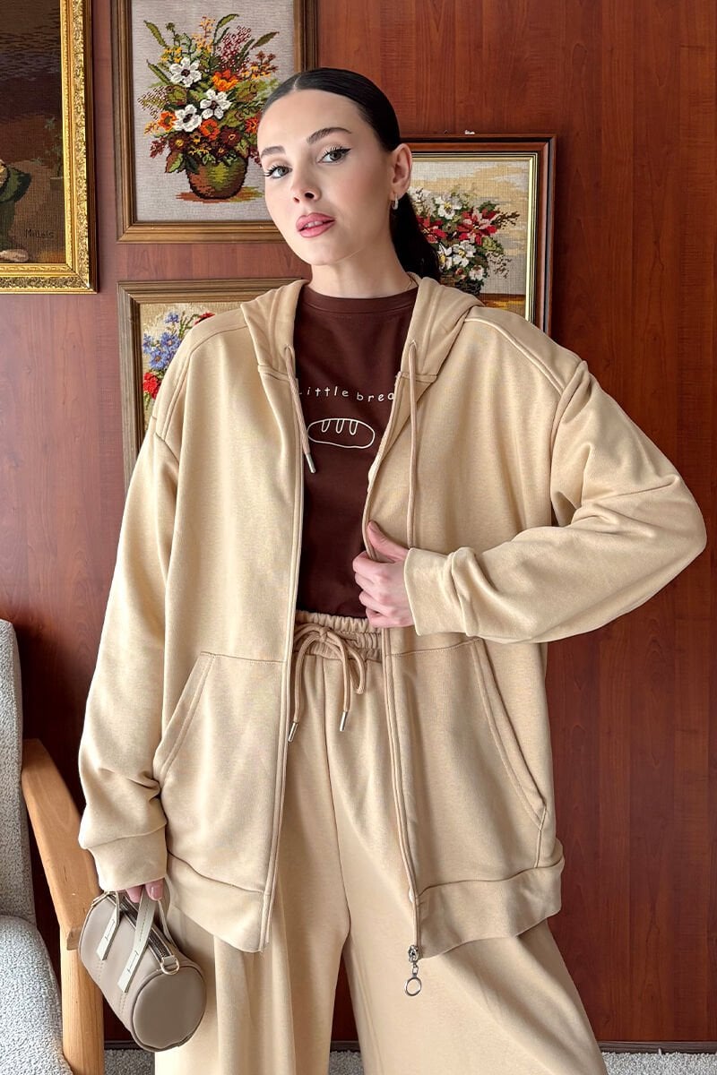 Bej 3 İplik Basic Hırka