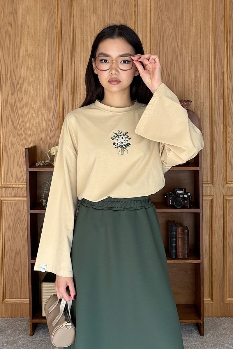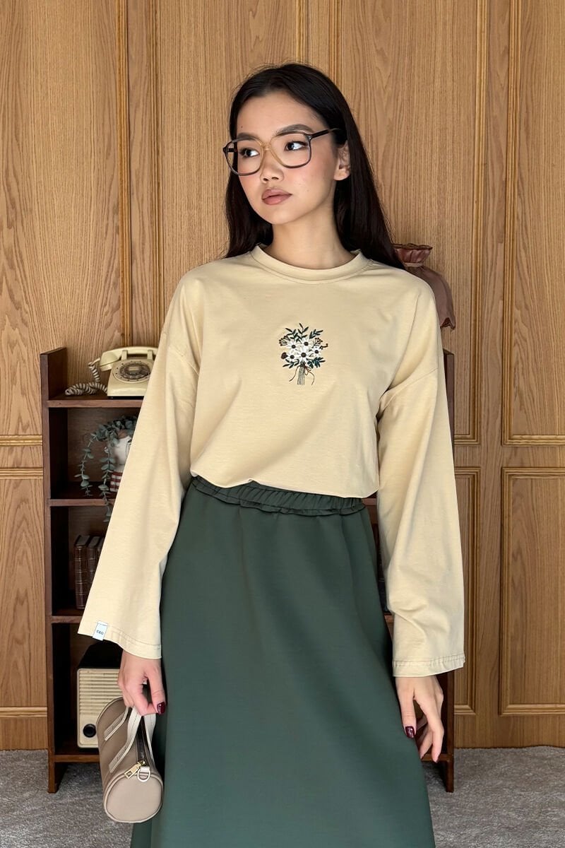 Bej Nakışlı Body & Haki Scuba Etek Takım