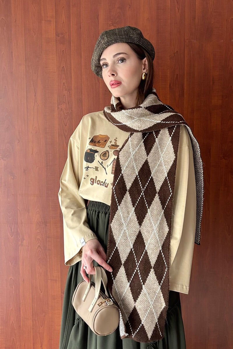 Bej Glochu Baskılı Basic Body
