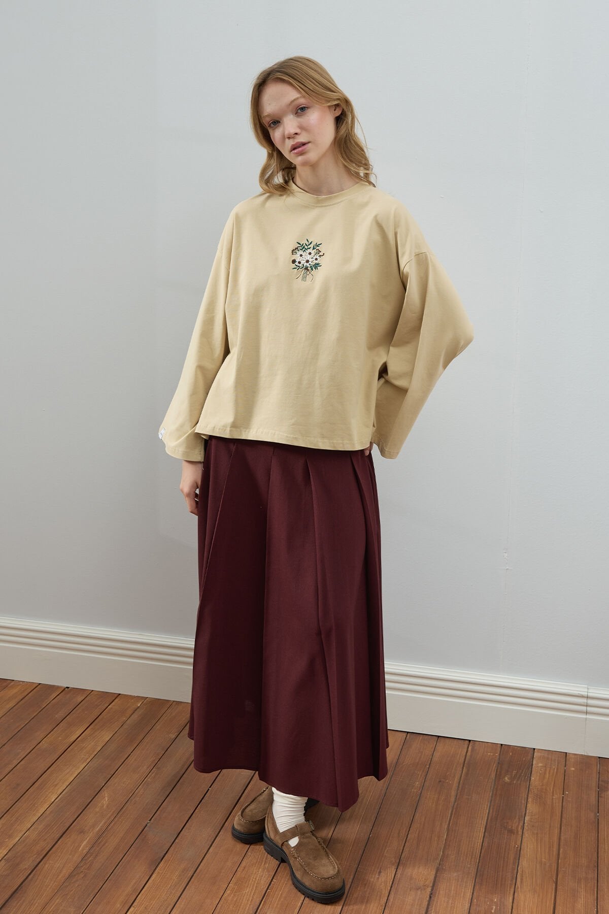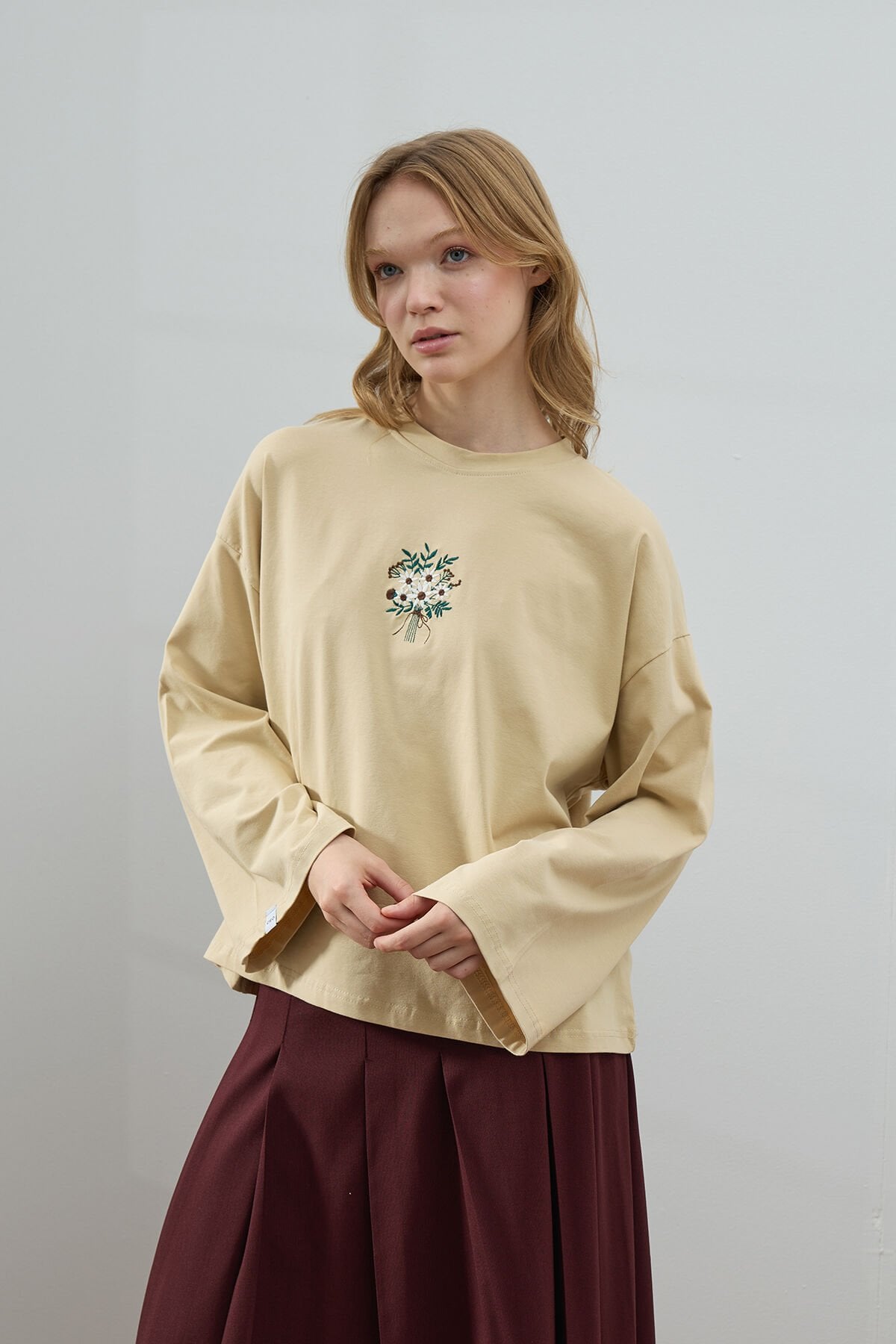 Bej Nakışlı Body