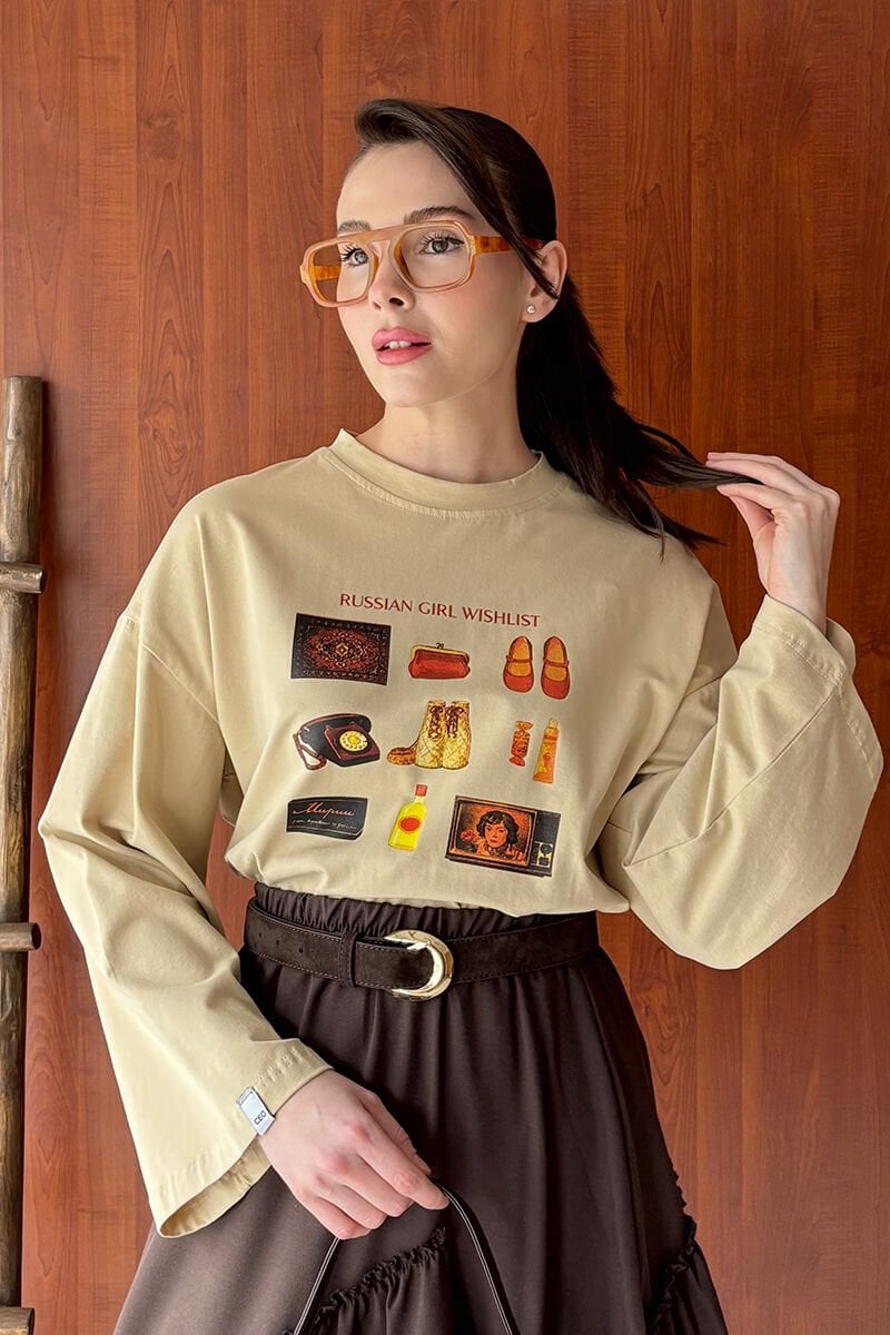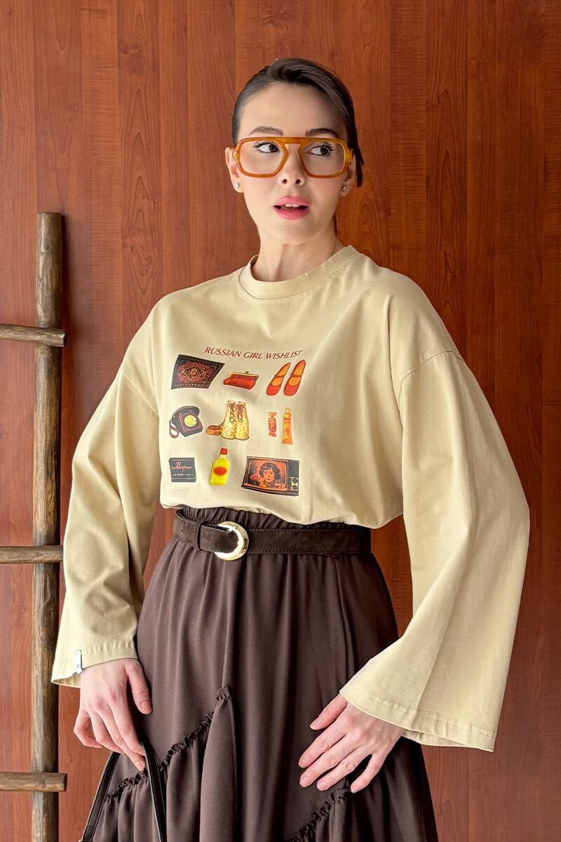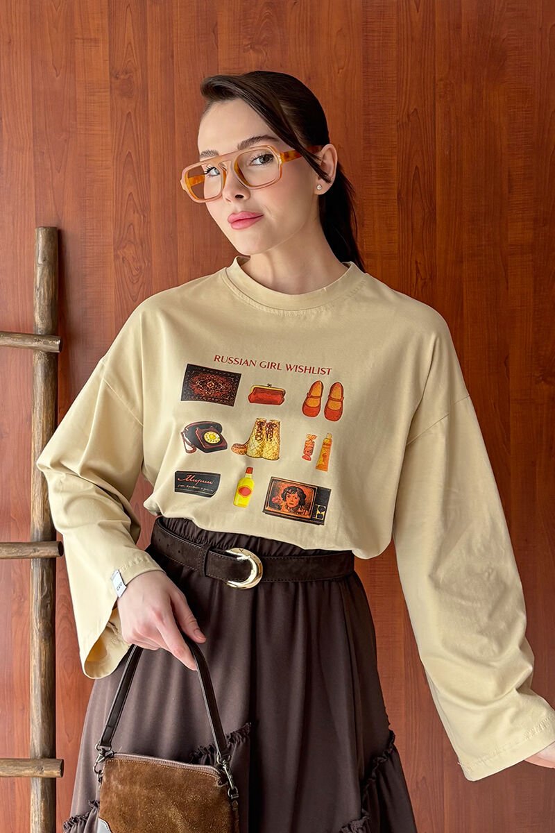 Bej Otantik Baskılı Basic Body