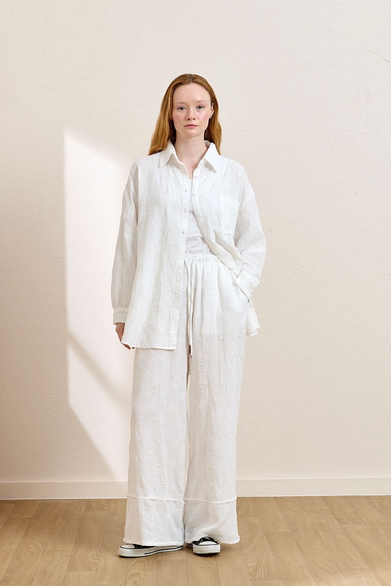 Beyaz Fistolu Müslin Double Paça Pantolon