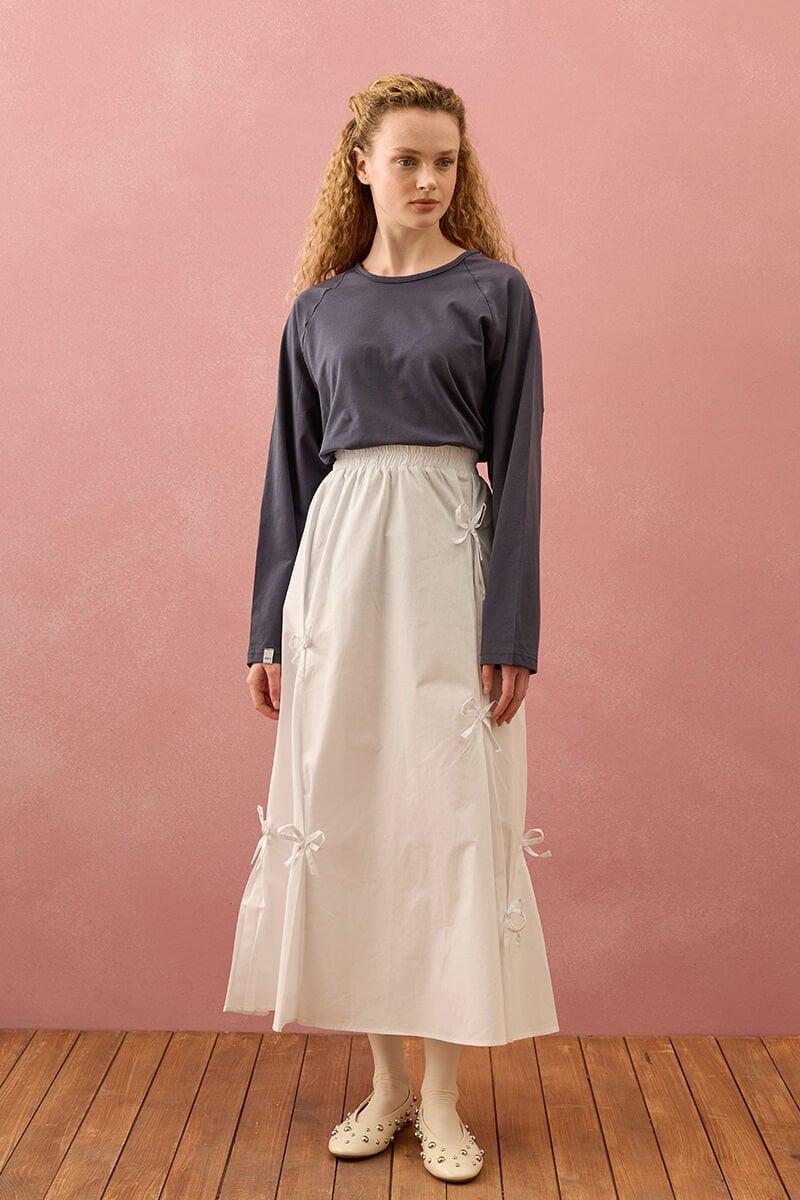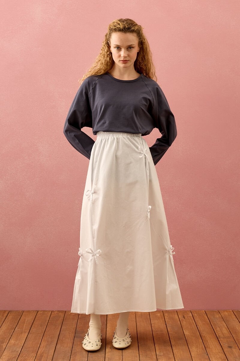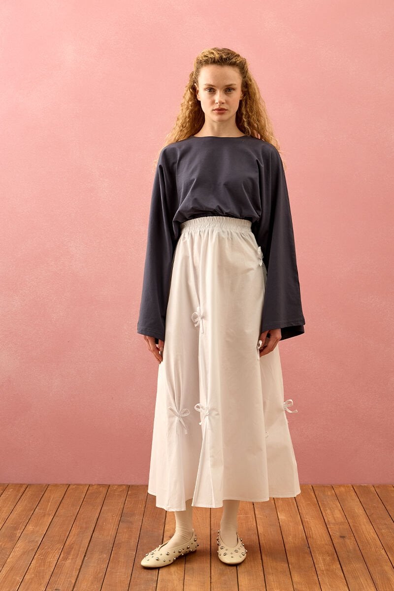Beyaz Fiyonklu Etek
