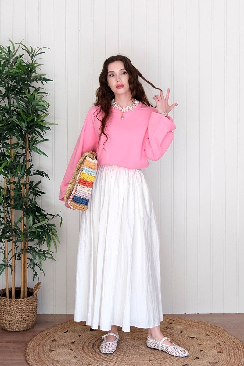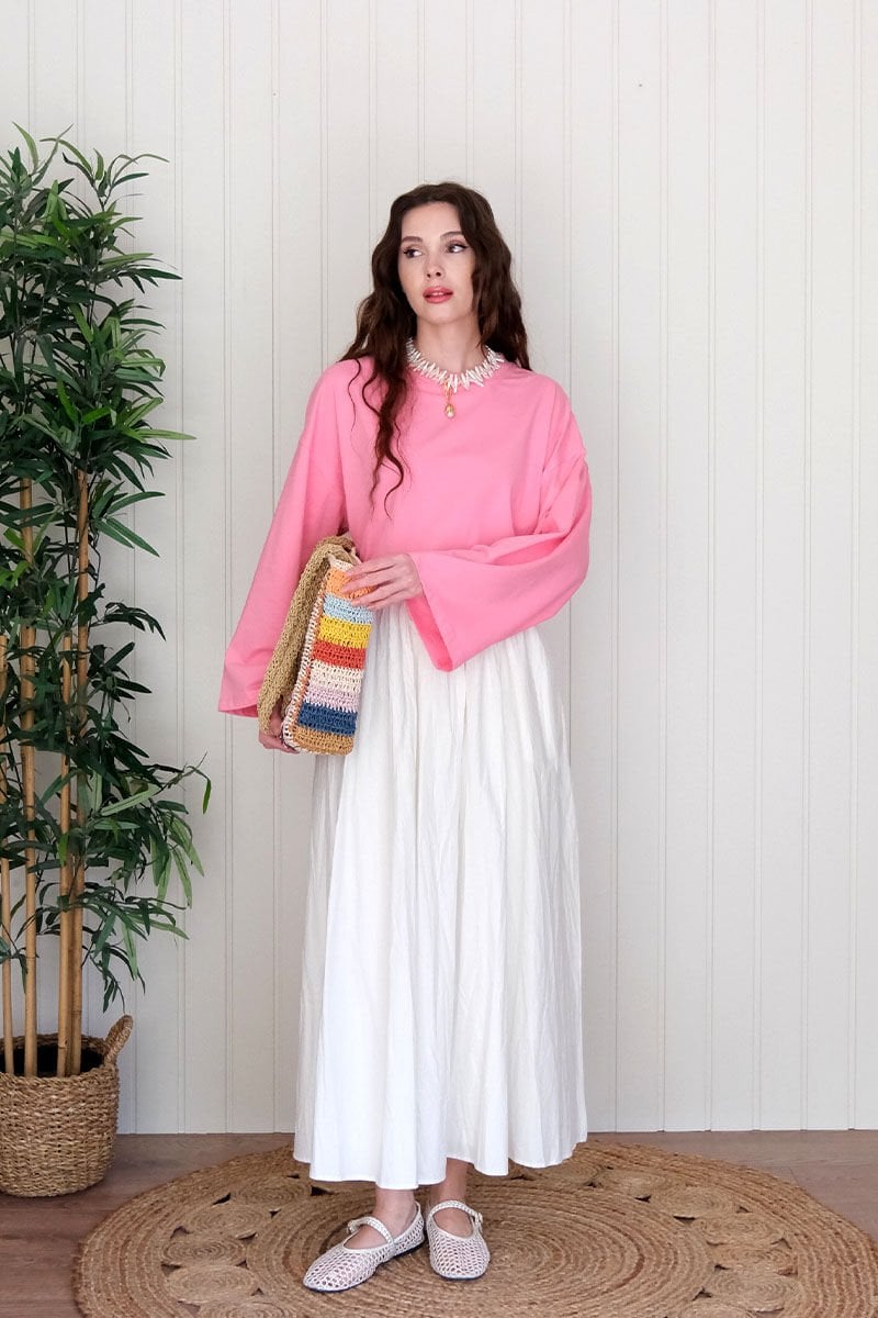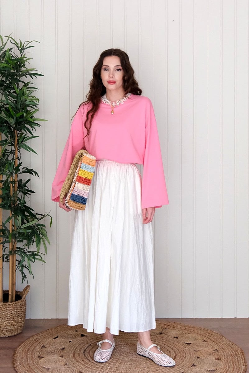 Beyaz Kraşlı Balon Etek