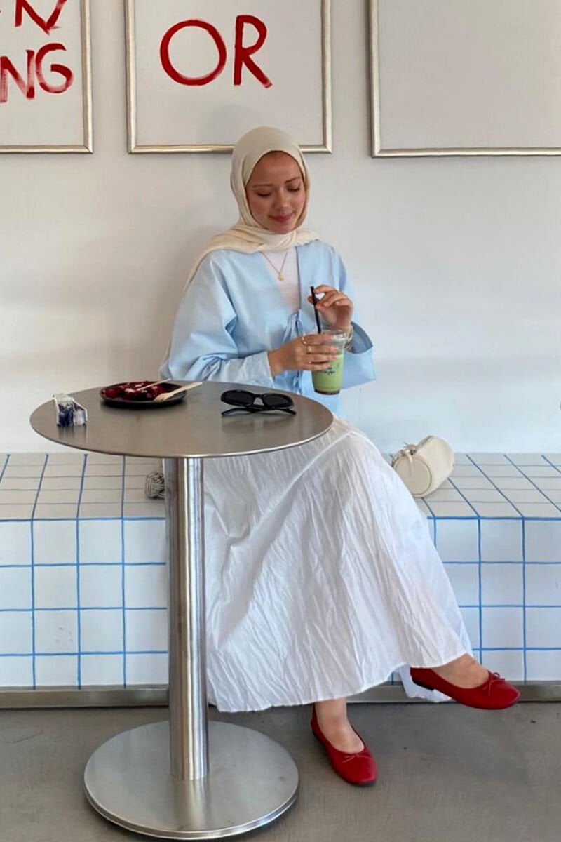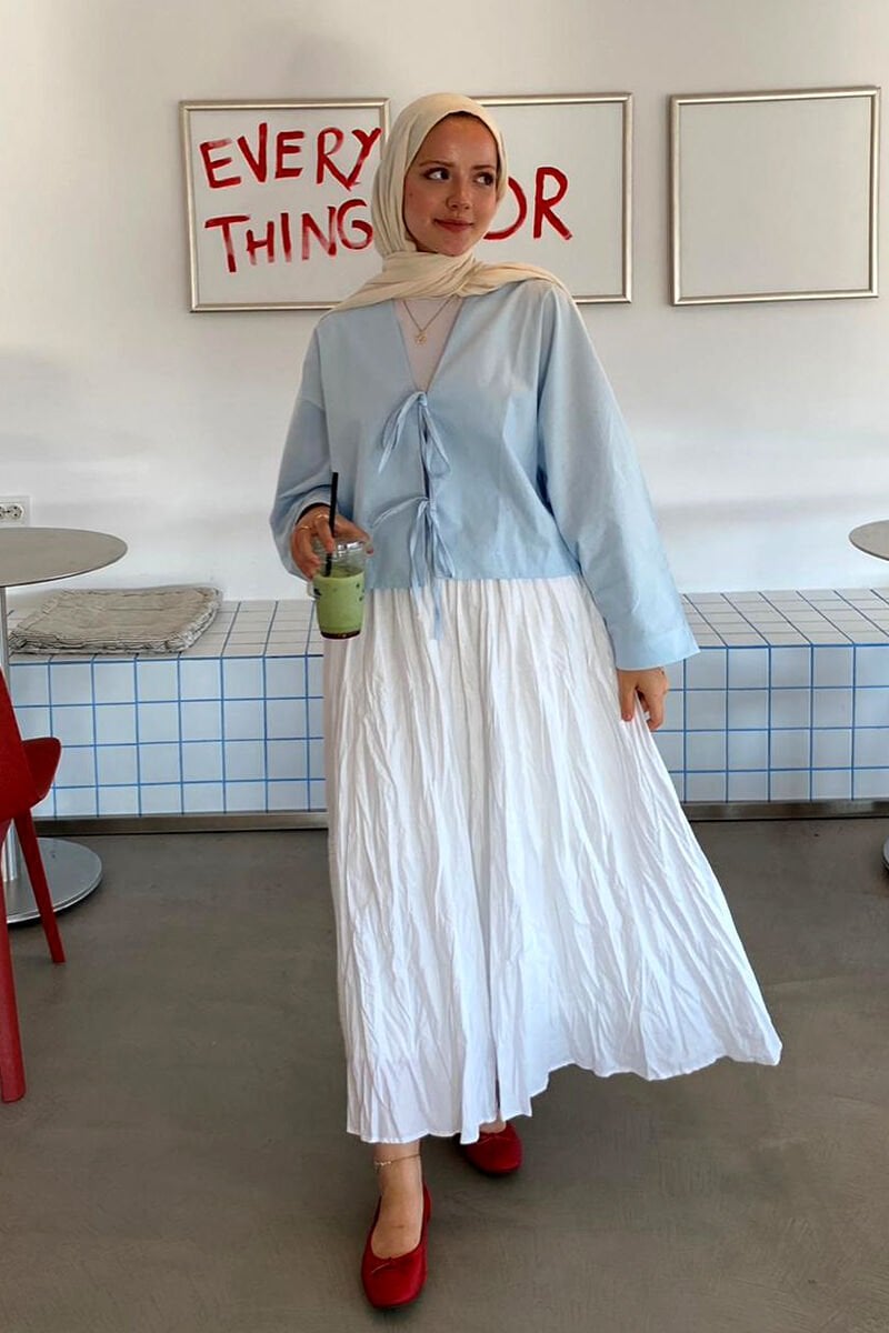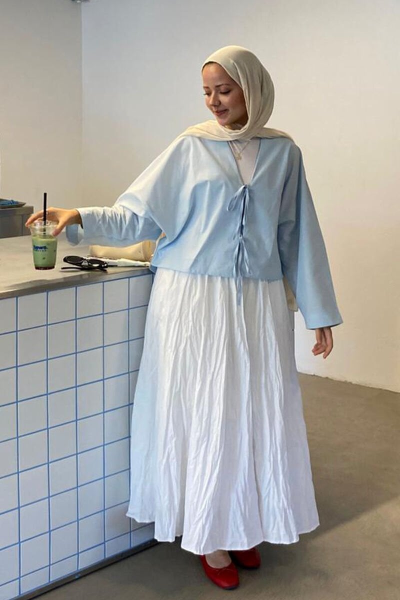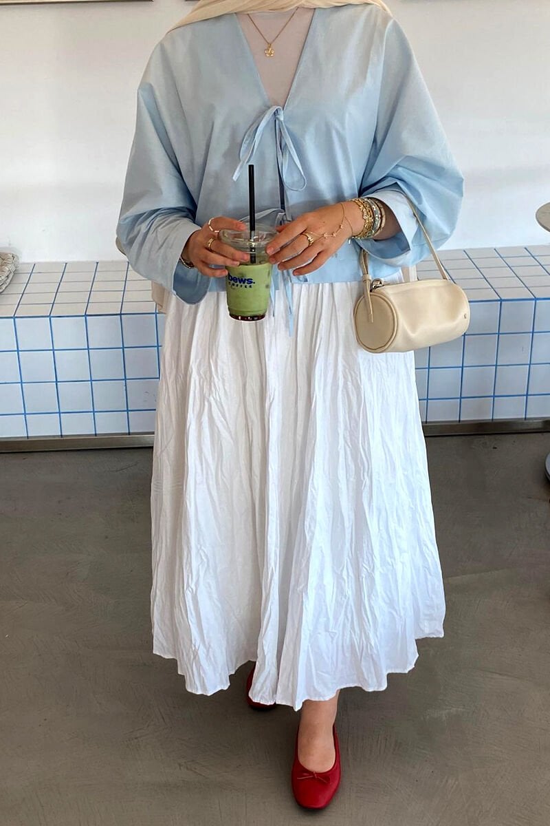 Beyaz Kraşlı Balon Etek